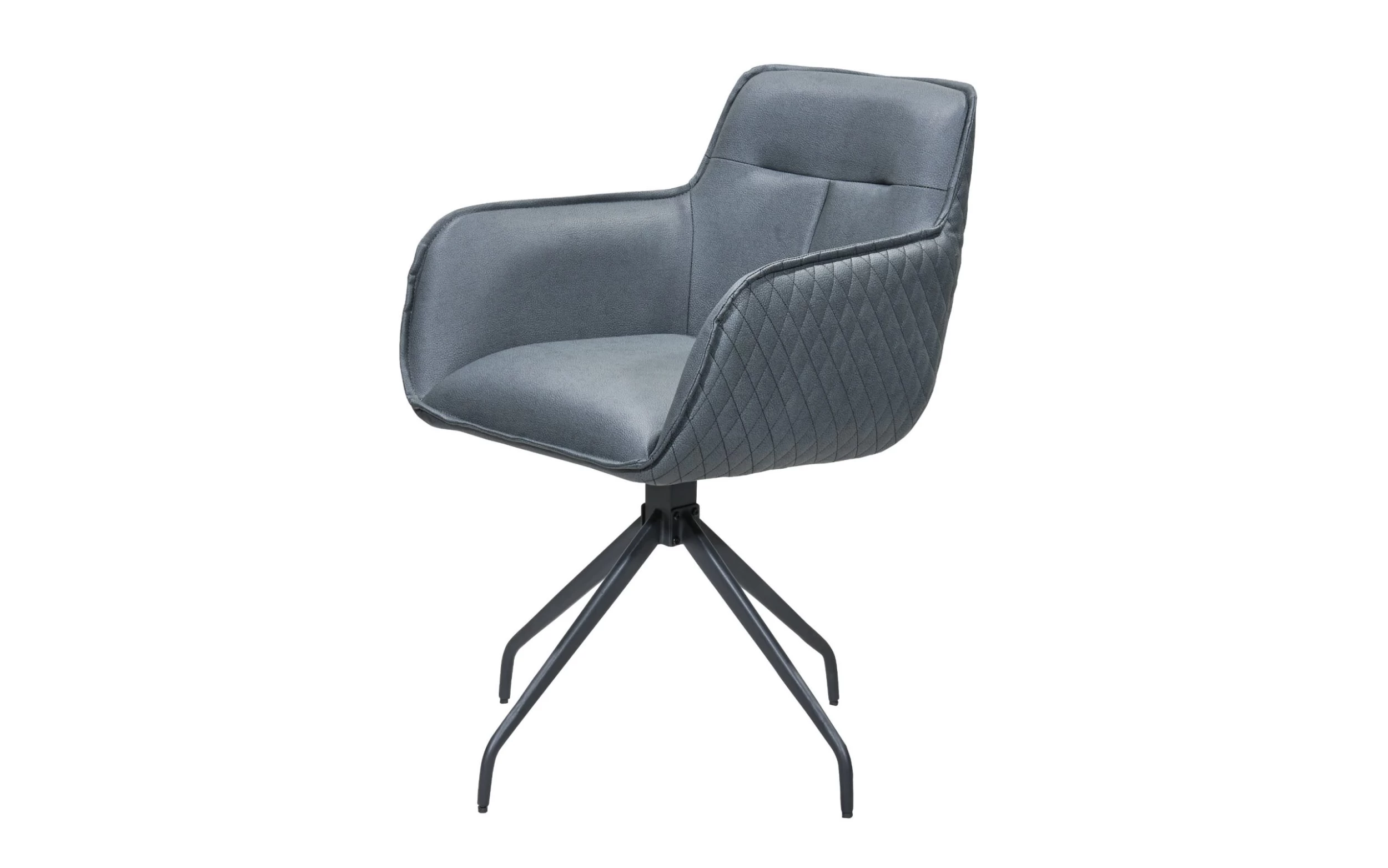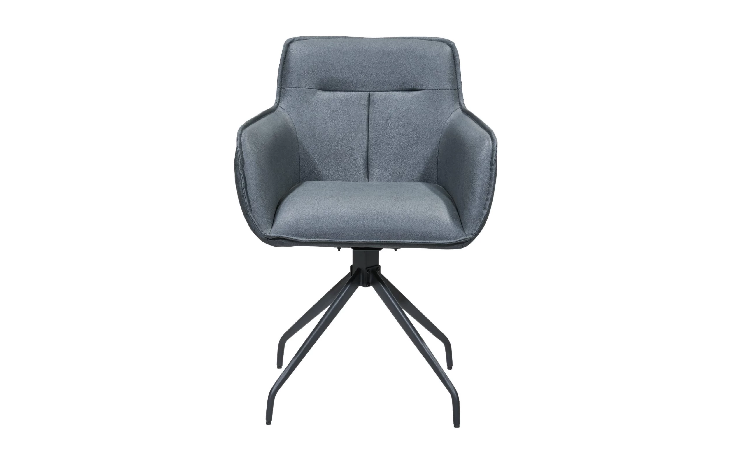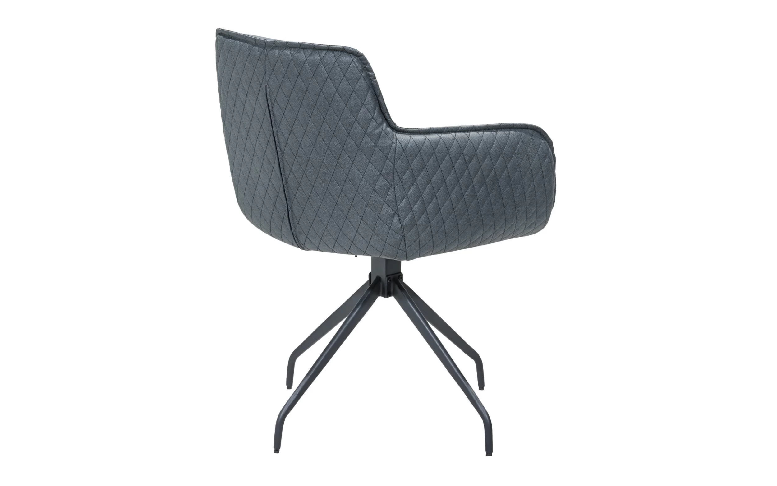 Ausführung mit Kunstlederbezug in anthrazit, Ziernaht in der Rückenfläche, Gestell aus Metall in schwarz pulverbeschichtet, 180° drehbar mit Rückholfunktion,