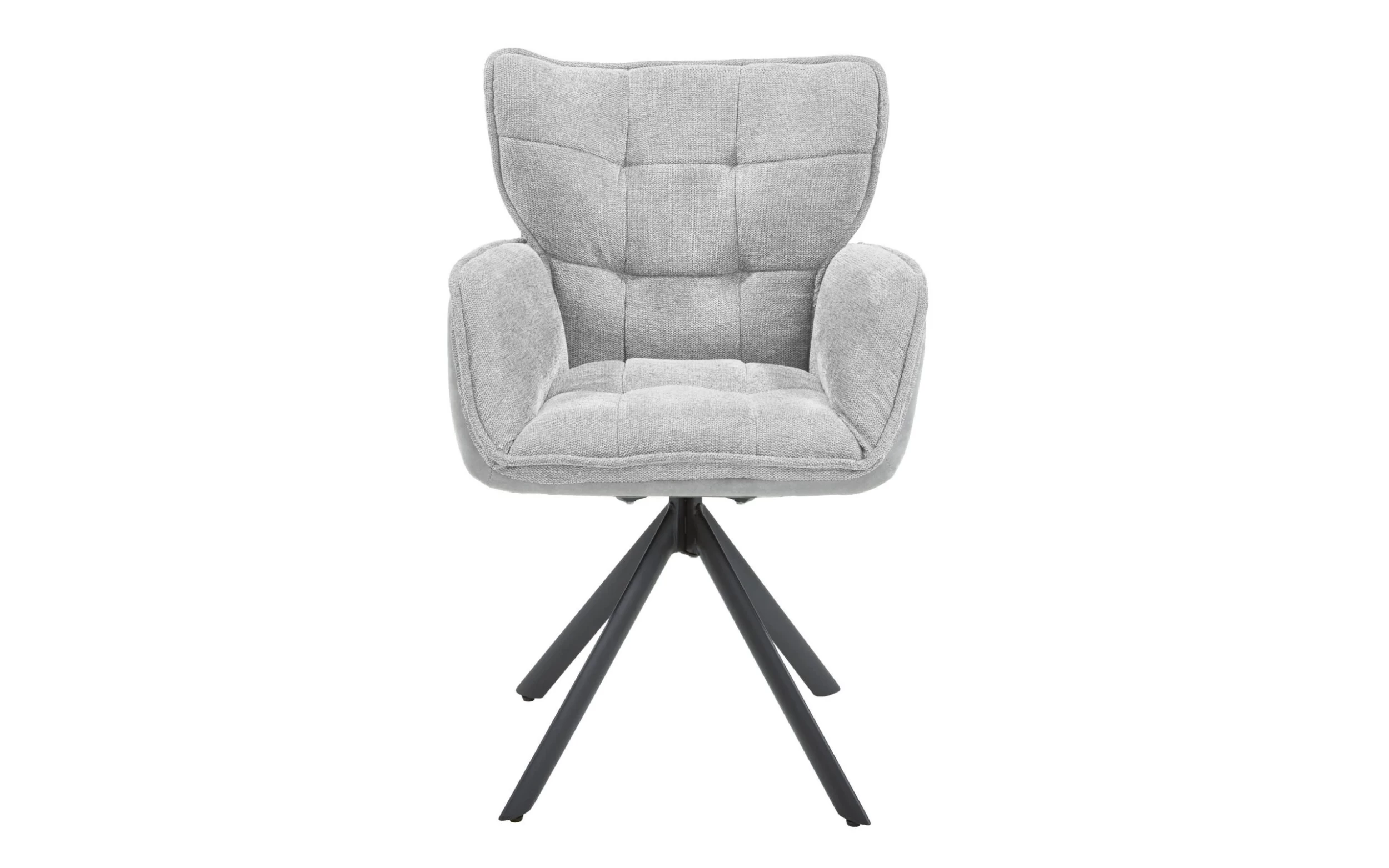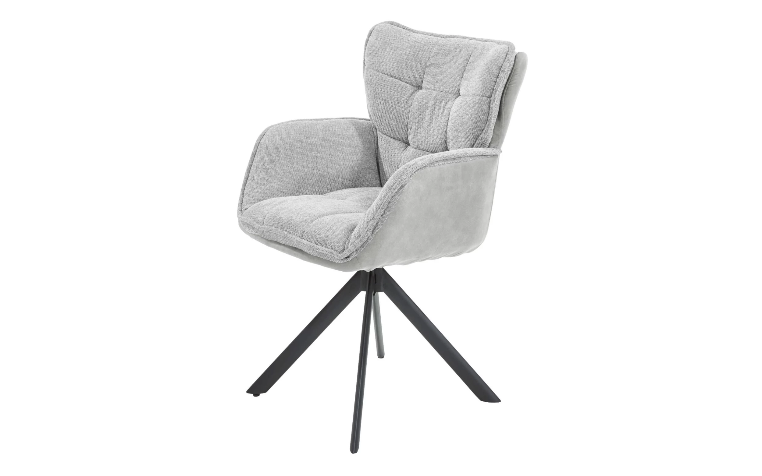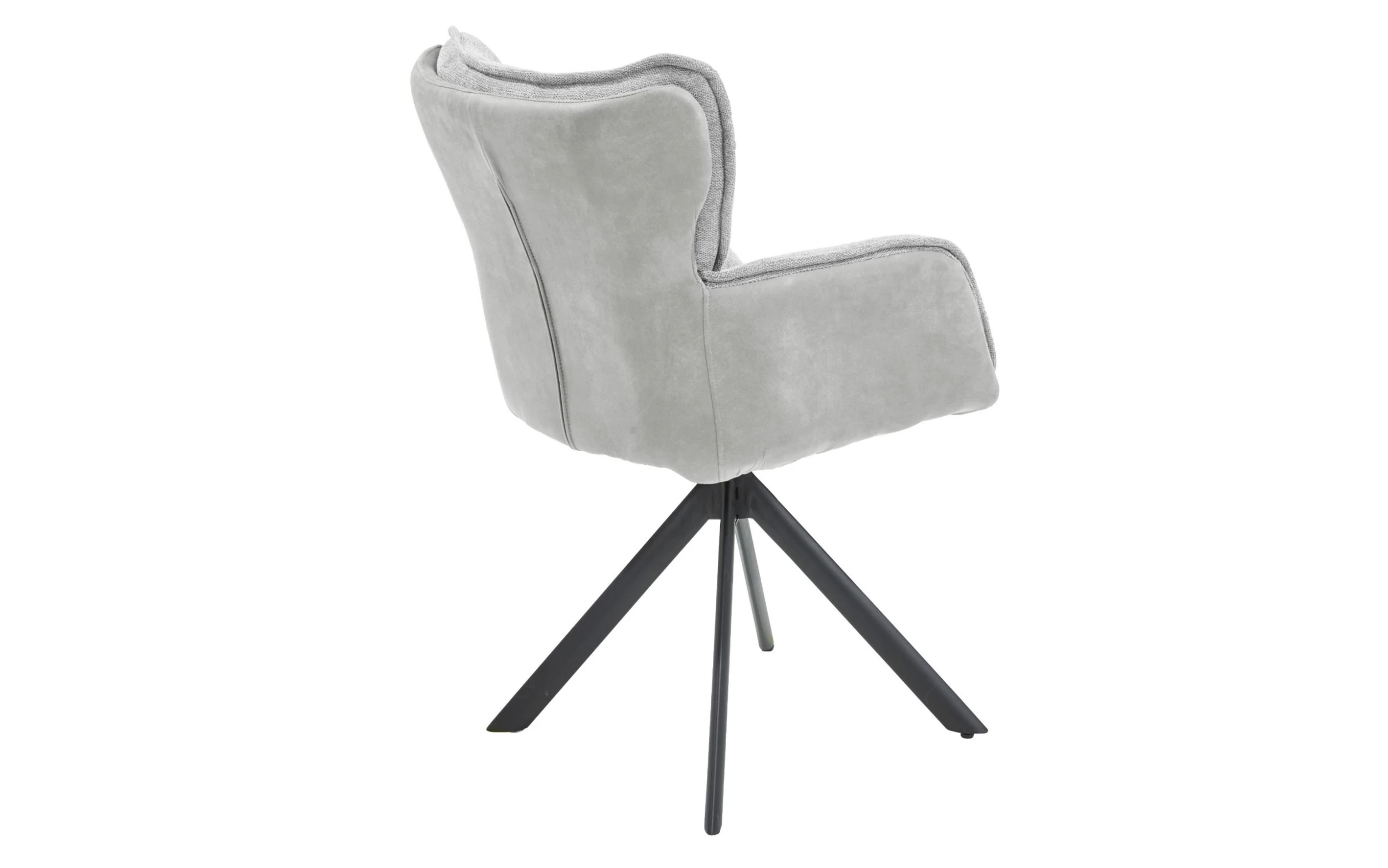 Ausführung Bezug Mikrofaser und Webstoff in grau/hellgrau, Gestell aus Metall in schwarz pulverbeschichtet, 180° drehbar mit Rückholfunktion,