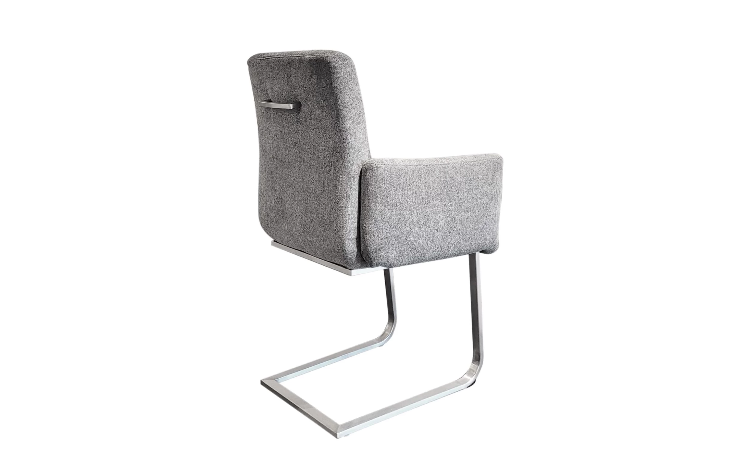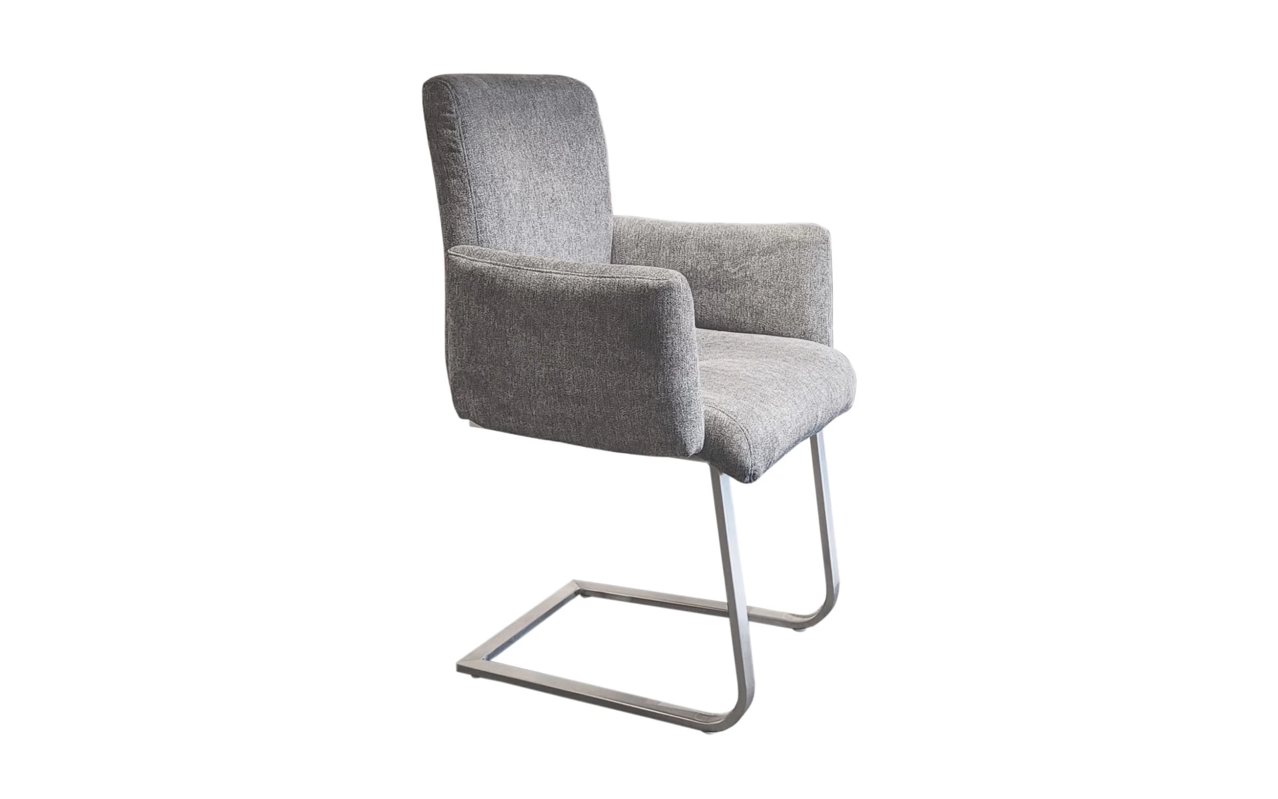 Ausführung Stoff 0715 in grey, Rücken echt bezogen, Polyätherschaum-Polsterung auf Wellenunterfederung, Zierkappnaht, Rücken glatt, Sitz ist gesteppt,