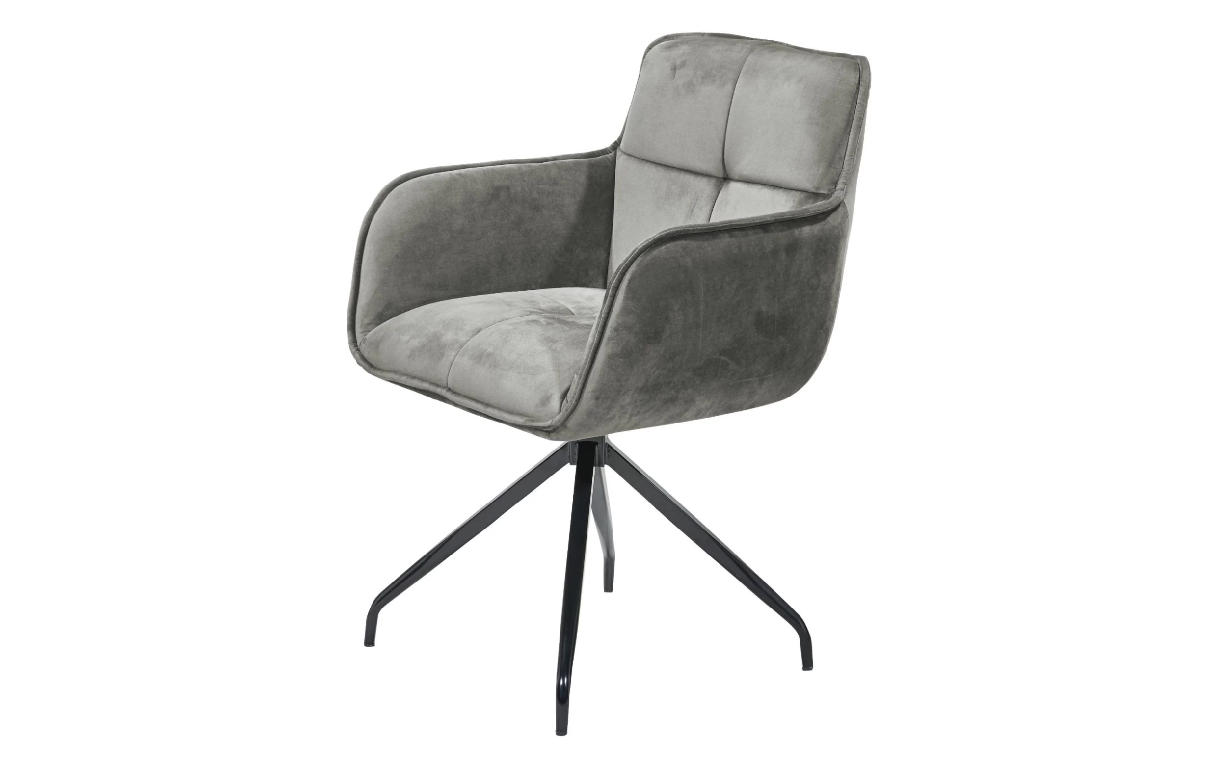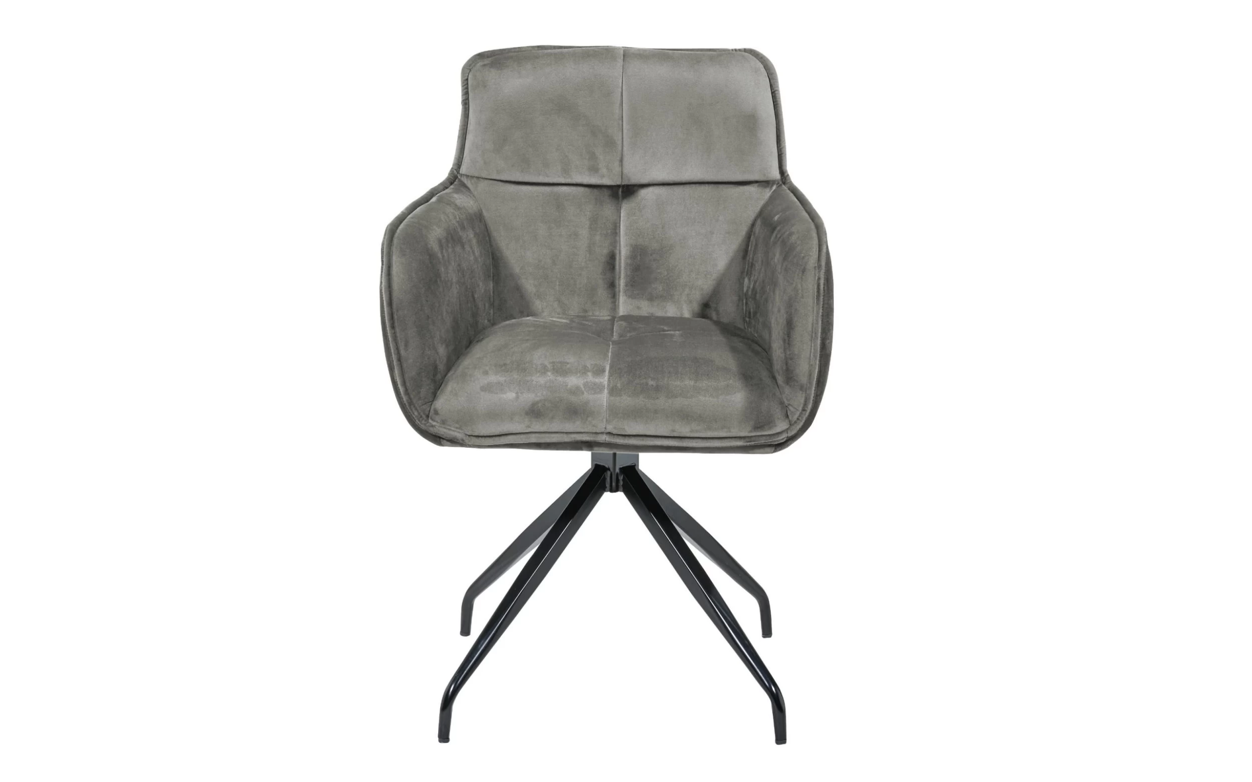 Ausführung Bezug Samtvelour in grau, Gestell aus Metall in schwarz pulverbeschichtet.