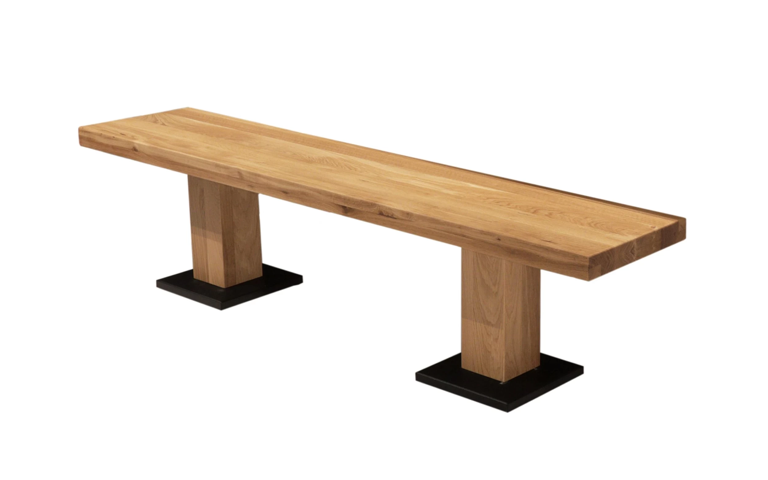 Ausführung in Charaktereiche massiv, Doppelsäule als Gestell, Bodenplatten in schwarz,