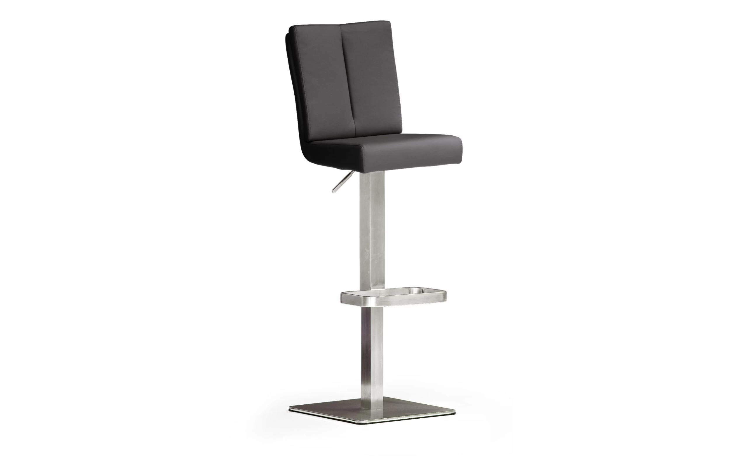 Ausführung Kunstleder in schwarz, formschöner eckiger Fuß in Edelstahl gebürstet, Rücken echt bezogen,