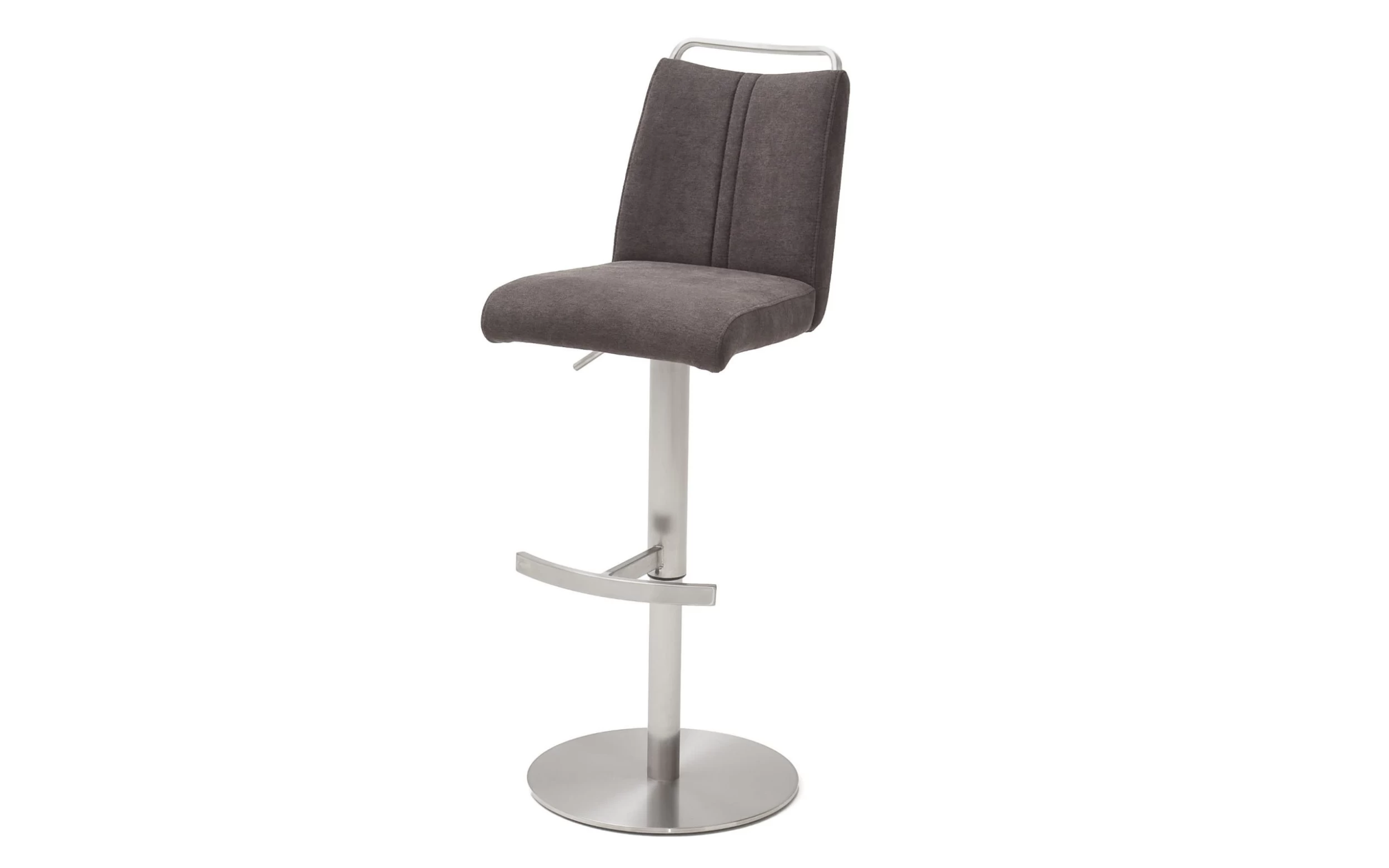Ausführung mit Bezug aus Feingewebe in braun, Gestell aus Edelstahl mit Tellerfuß, 360° drehbar,