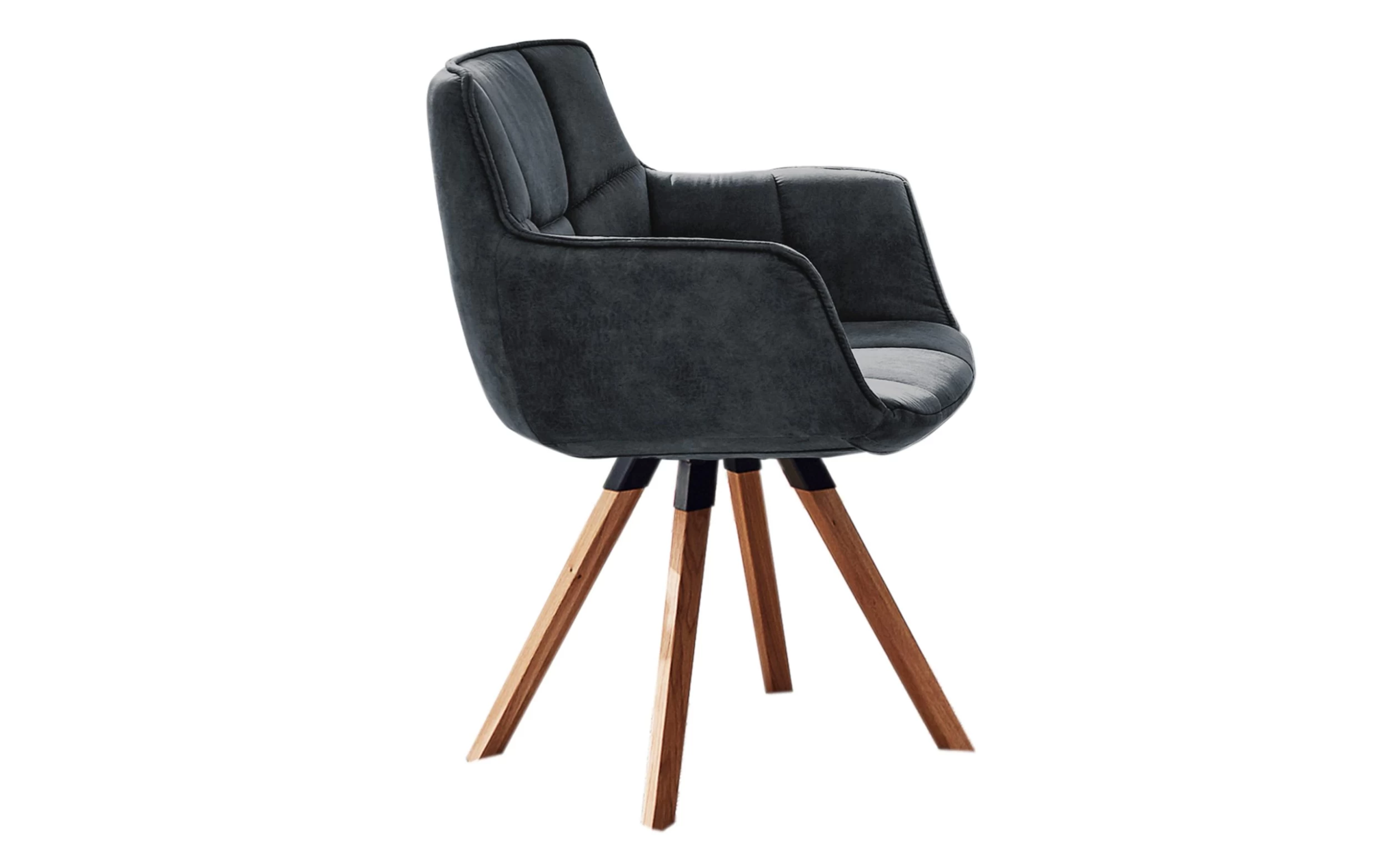 Qualität und Design vereinen sich in der Stuhlgruppe Tamina zu einzigartigen Möbelstücken. Hochwertige Materialien in einem modernen, zeitlosen Design, zaubern eine Wohlfühl-Atmosphäre in Ihren Wohnraum. Ausführung mit einem hochwertigen Microfaser-Stoffbezug (Aberdeen) in anthrazit, Stativ-Gestell aus massiver Wildeiche, geölt, Sitzschale aus 3D-Formschaum dadurch besonders bequem.
