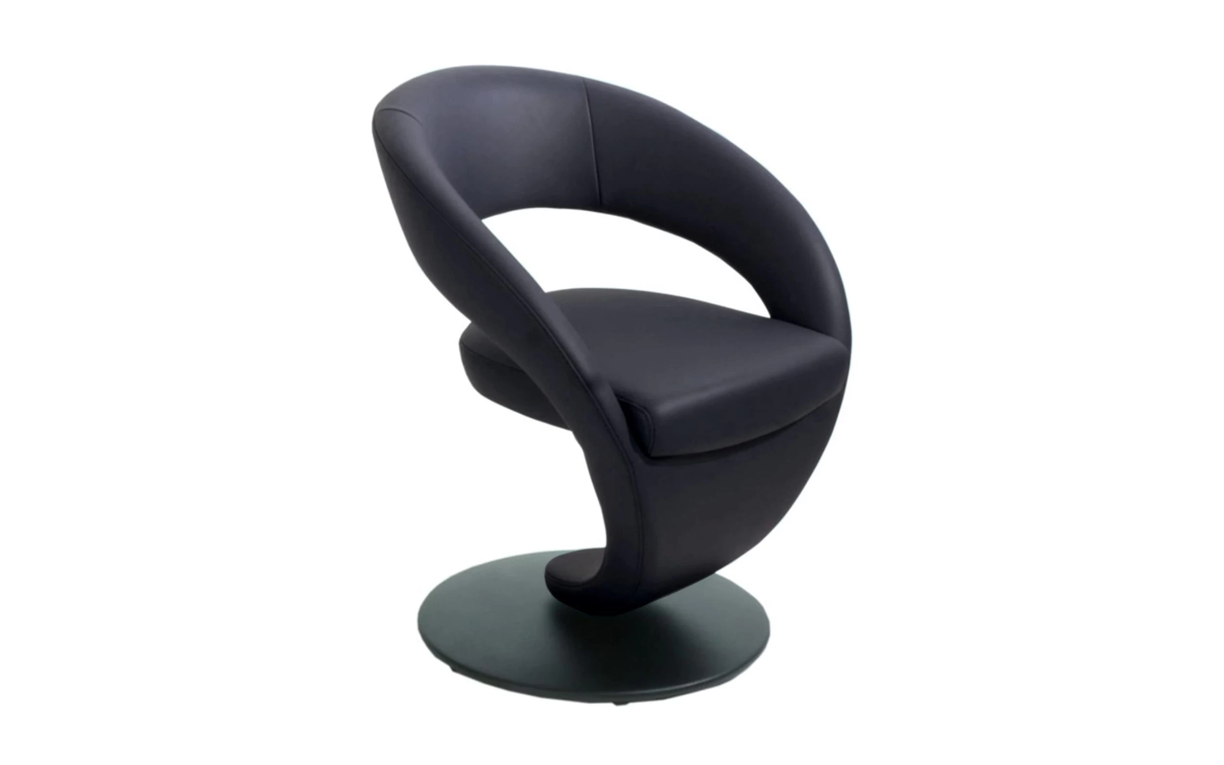 Ausführung mit Bezug aus Longlife Bronco Dickleder in nachtblau, Rücken echt bezogen, Drehteller aus Metall in schwarz Struktur,