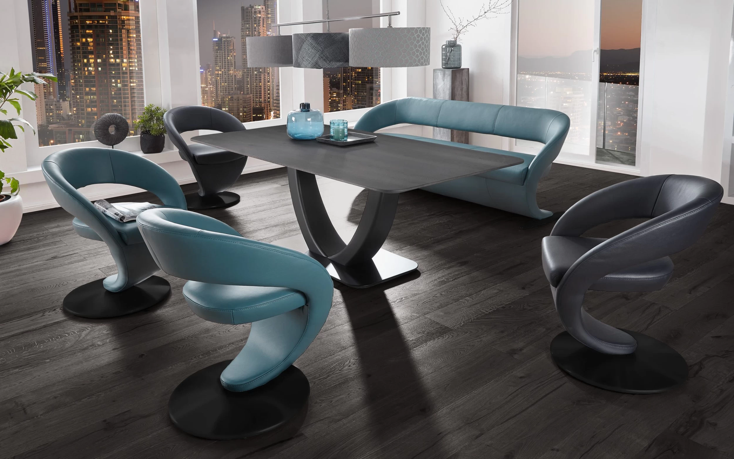 Ausführung mit Bezug aus Longlife Bronco Dickleder in topas, Rücken echt bezogen, Drehteller aus Metall in schwarz Struktur,