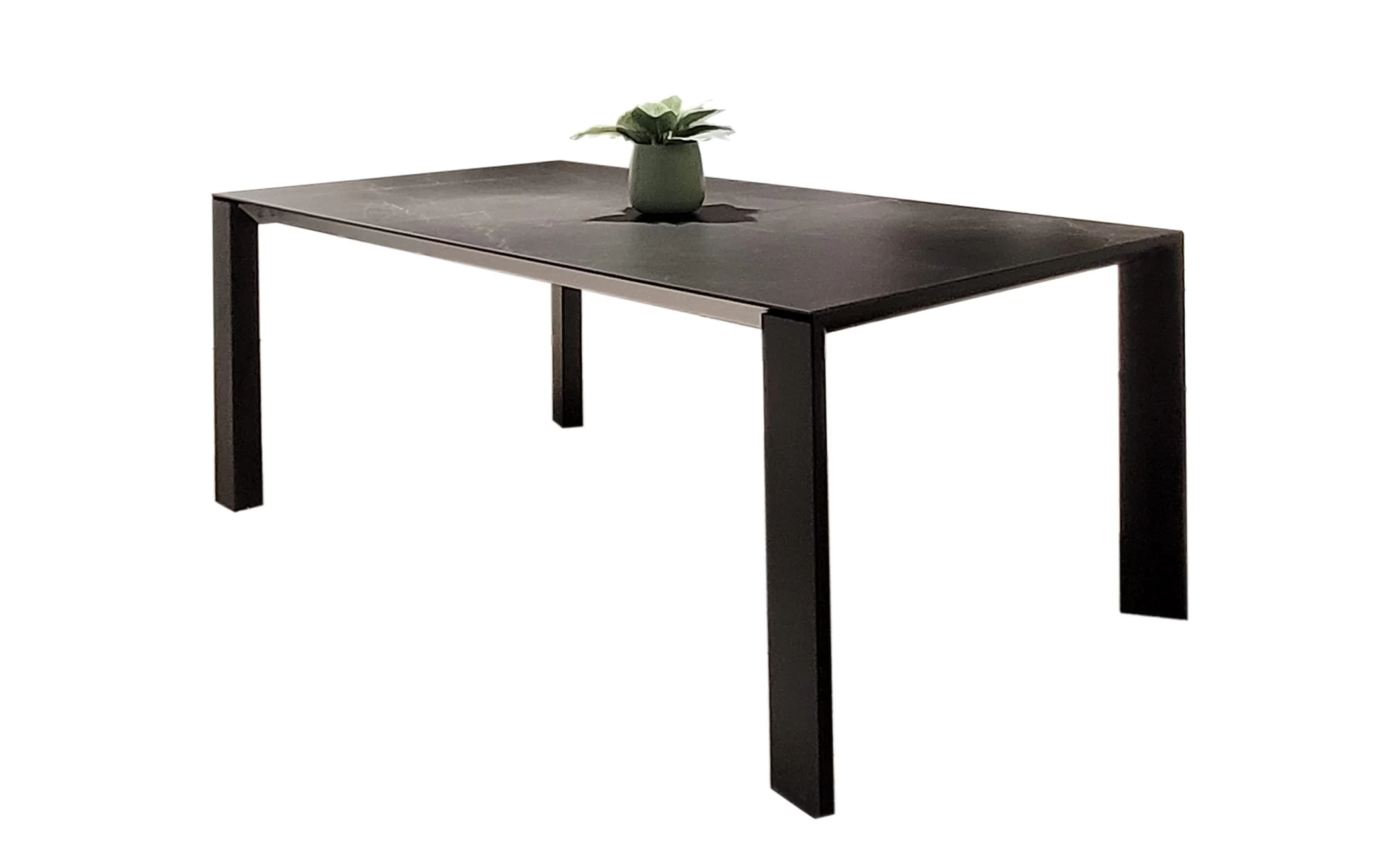 Ausführung der Tischplatte in Keramik Storm Nero, Gestell aus Metalll anthrazit pulverbeschichtet,