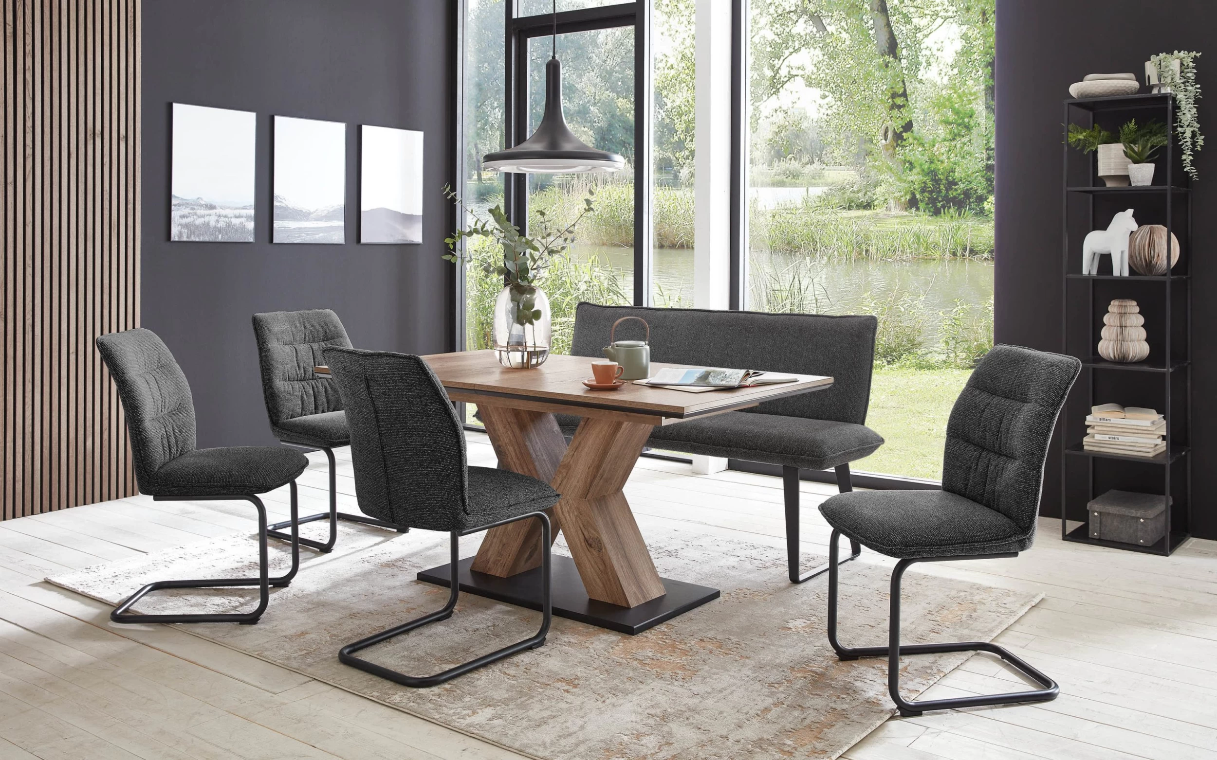 Ausführung mit Webstoff in anthrazit, Mikro-Taschenfederkern im Sitz, Kufen aus Eisen in schwarz,