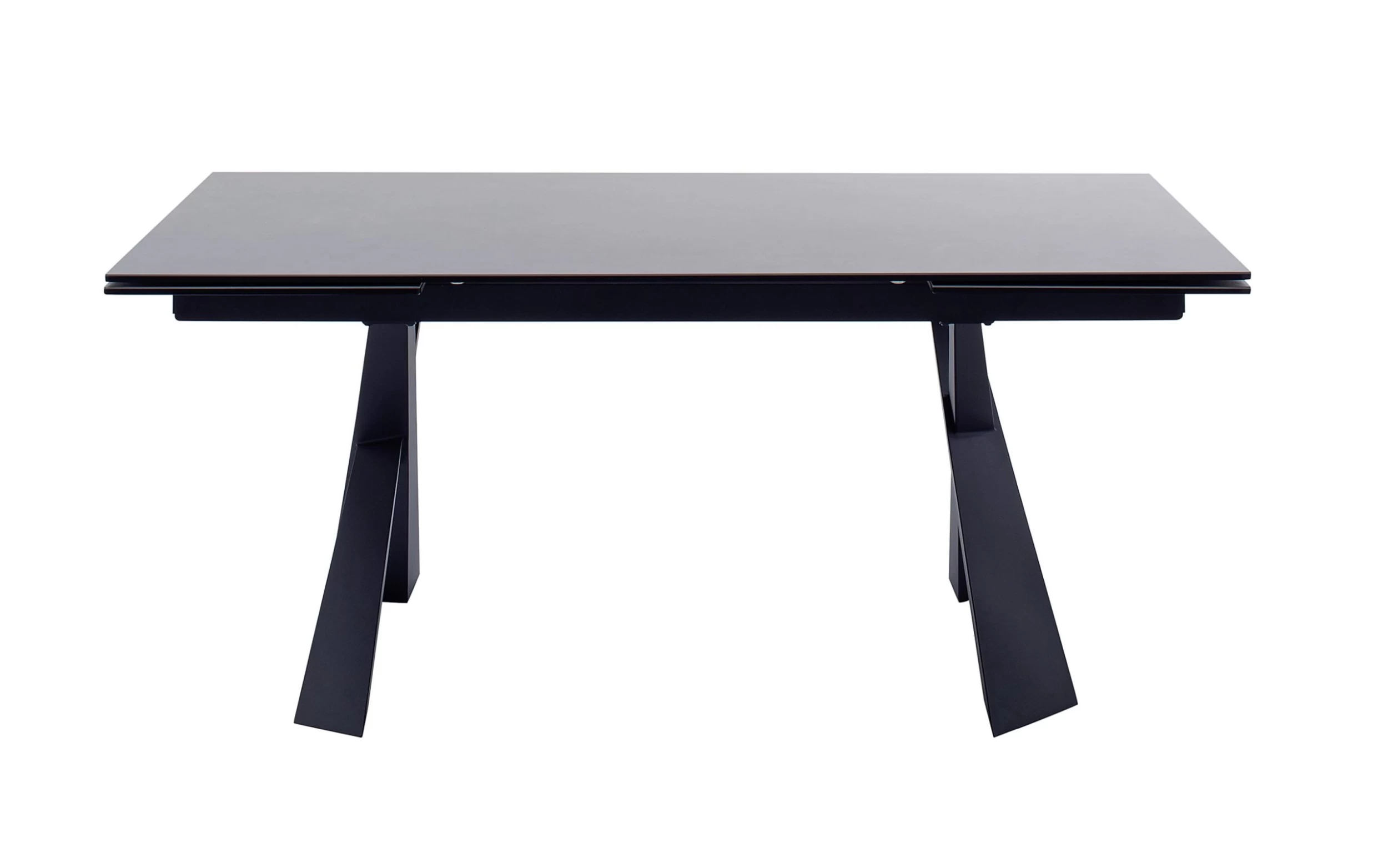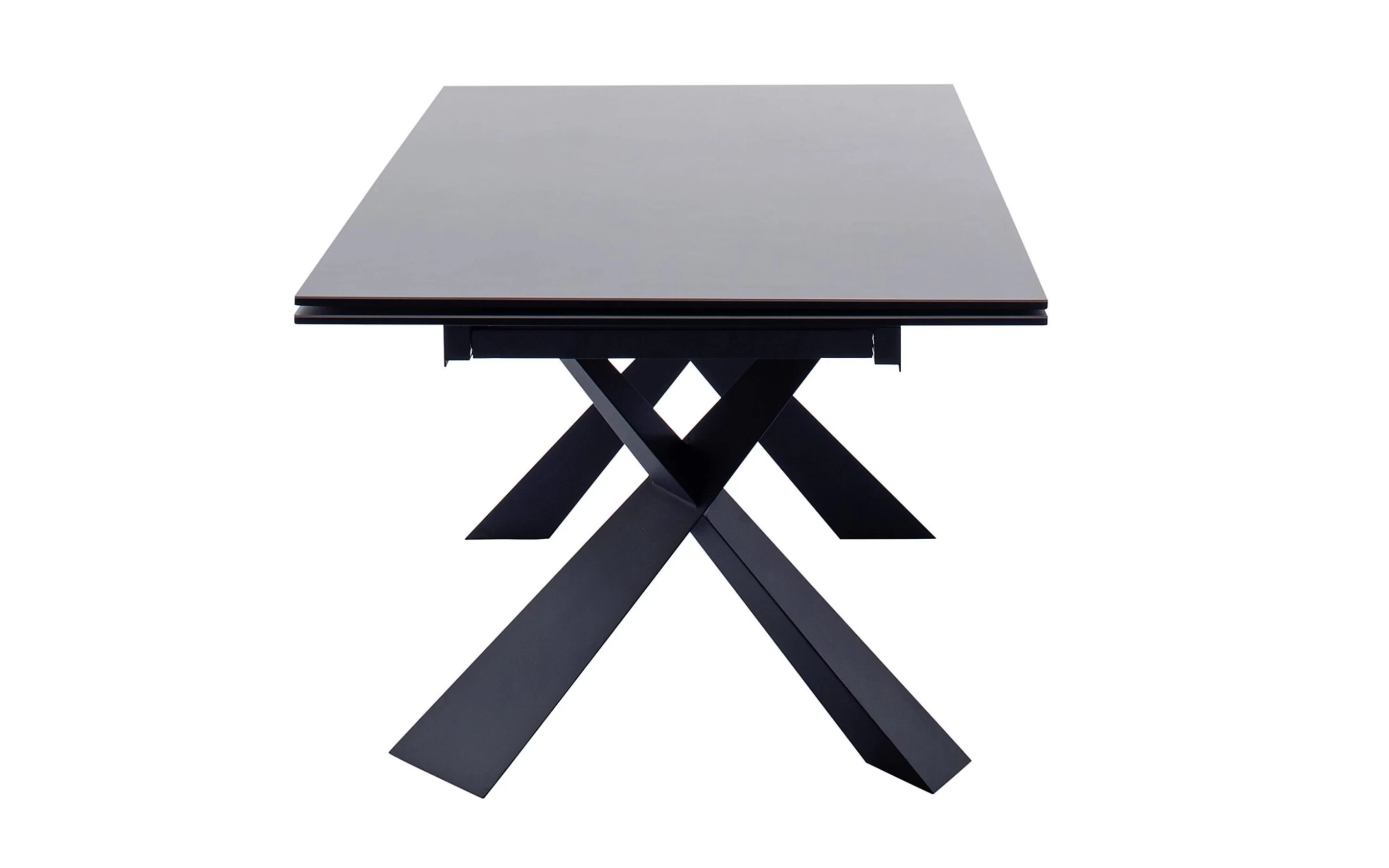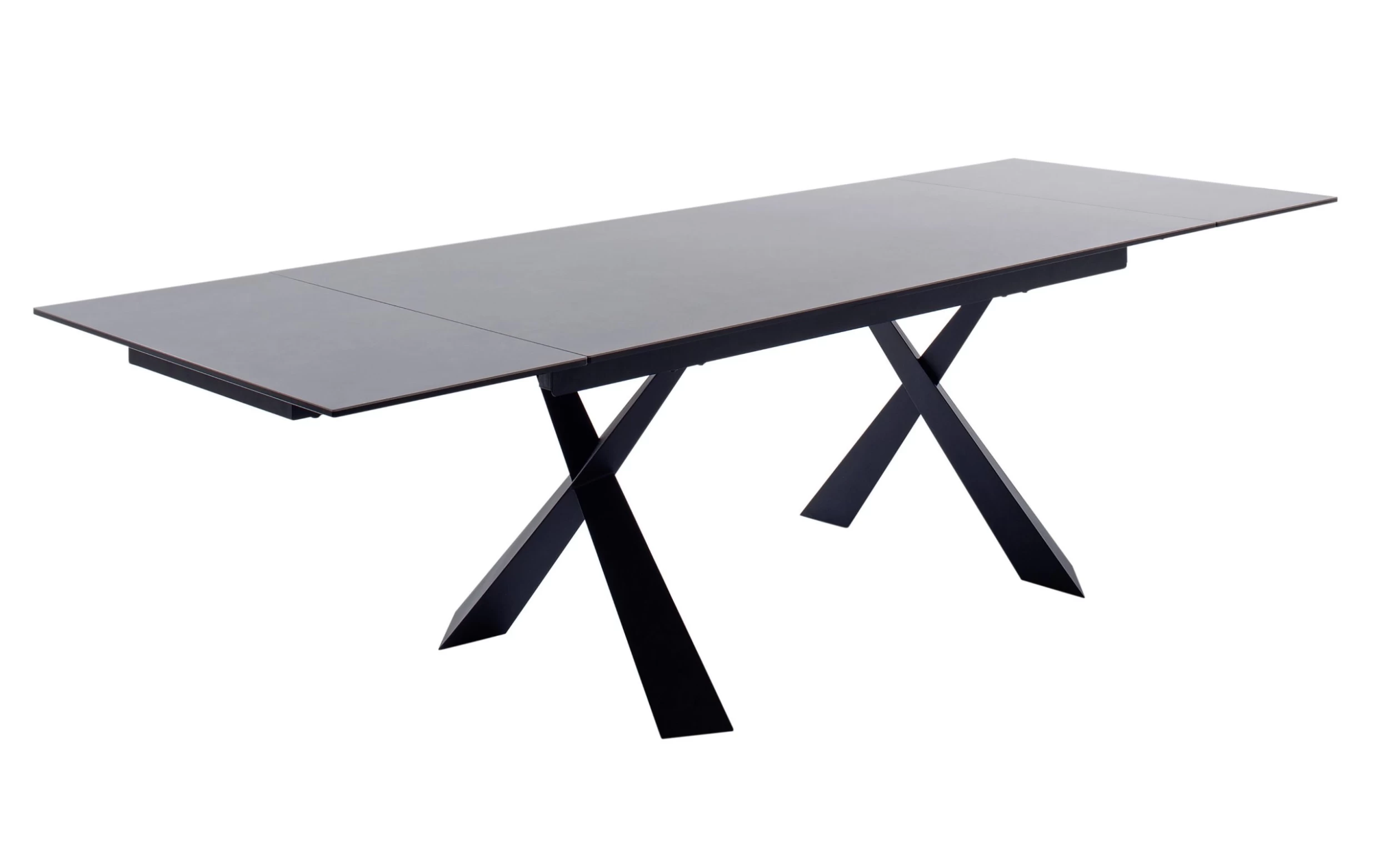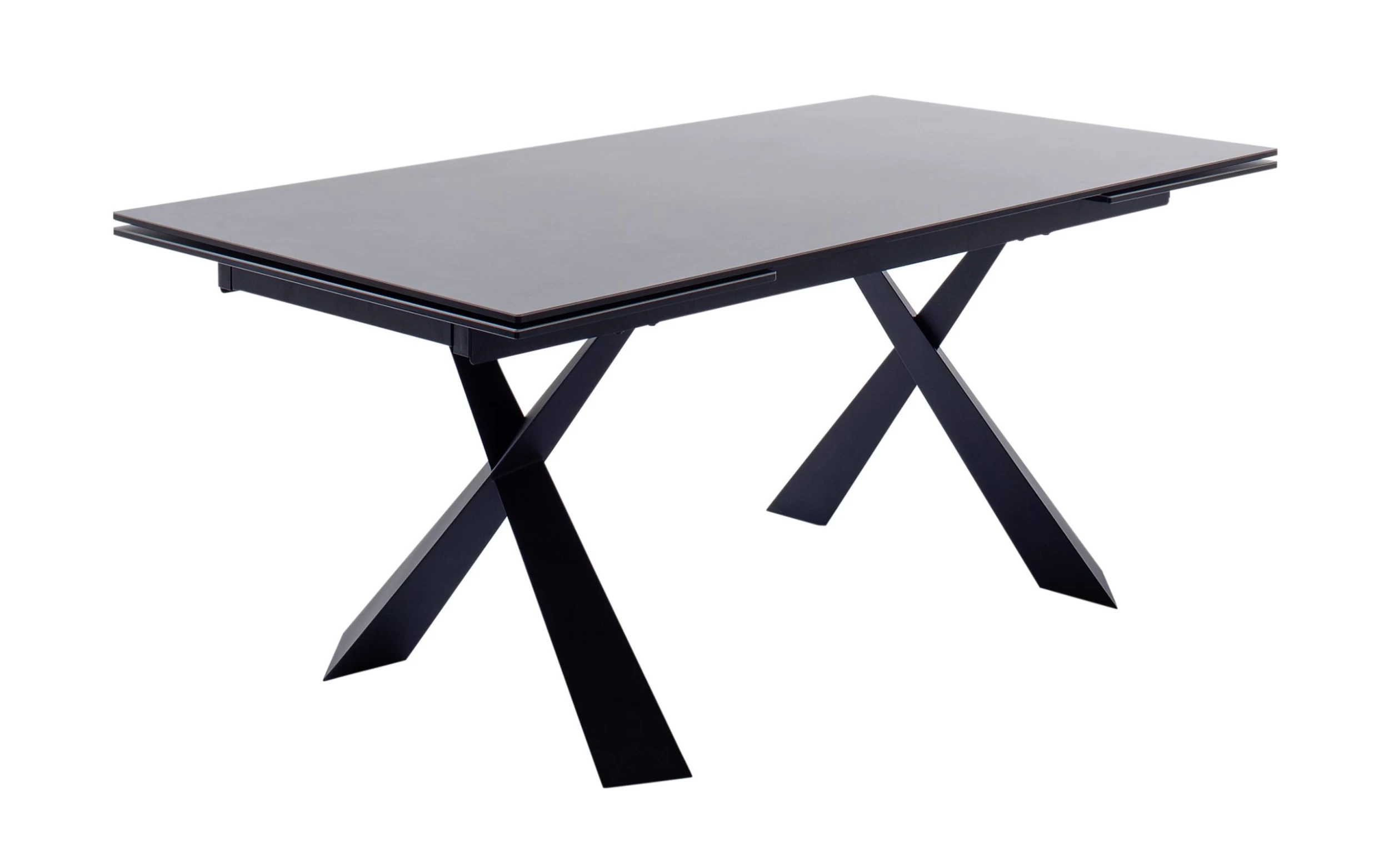 Ausführung der Tischplatte aus Keramik/Sicherheitsglas in schwarz lackiert, Gestell aus Metall in schwarz, inklusive Stirnauszug,