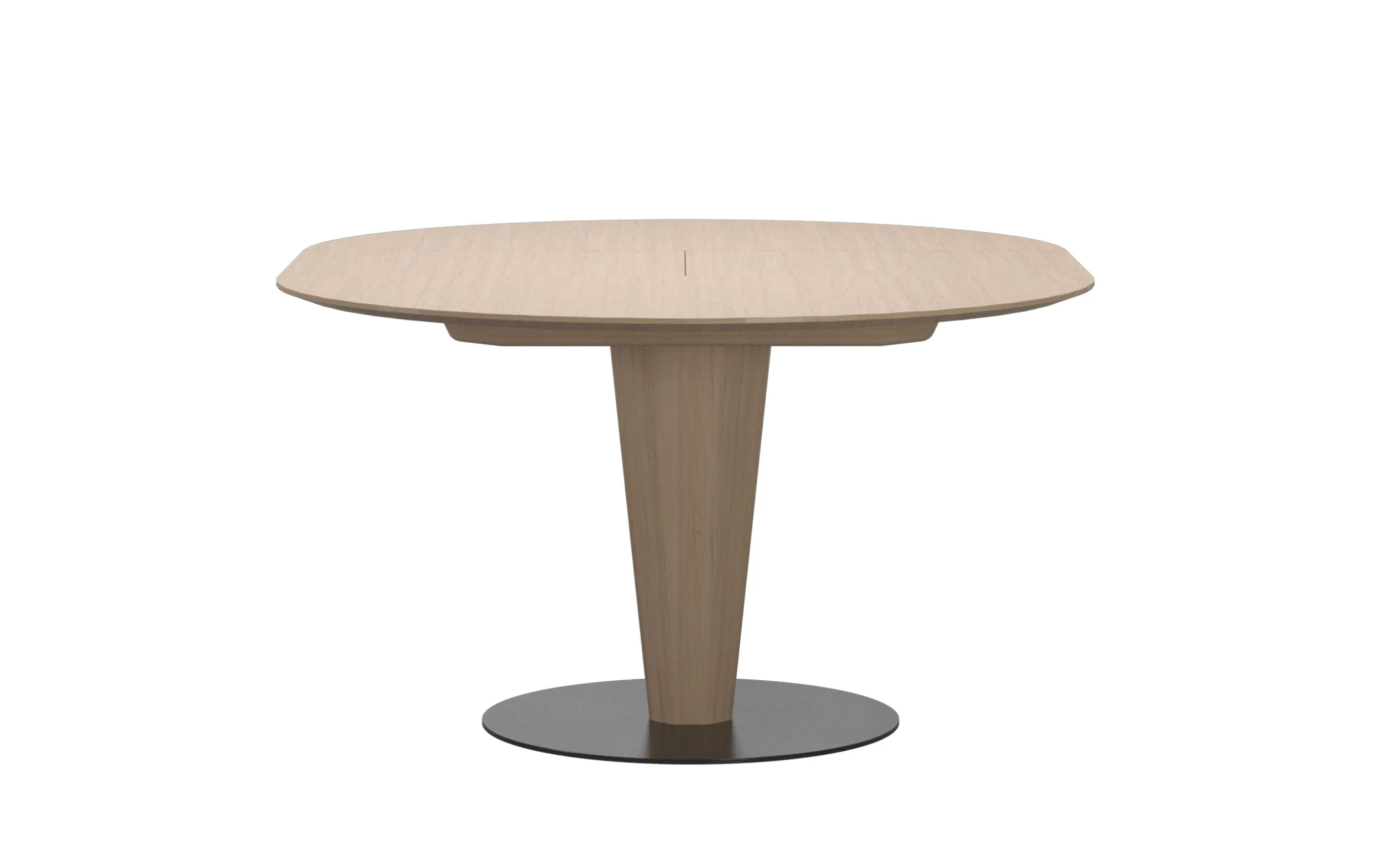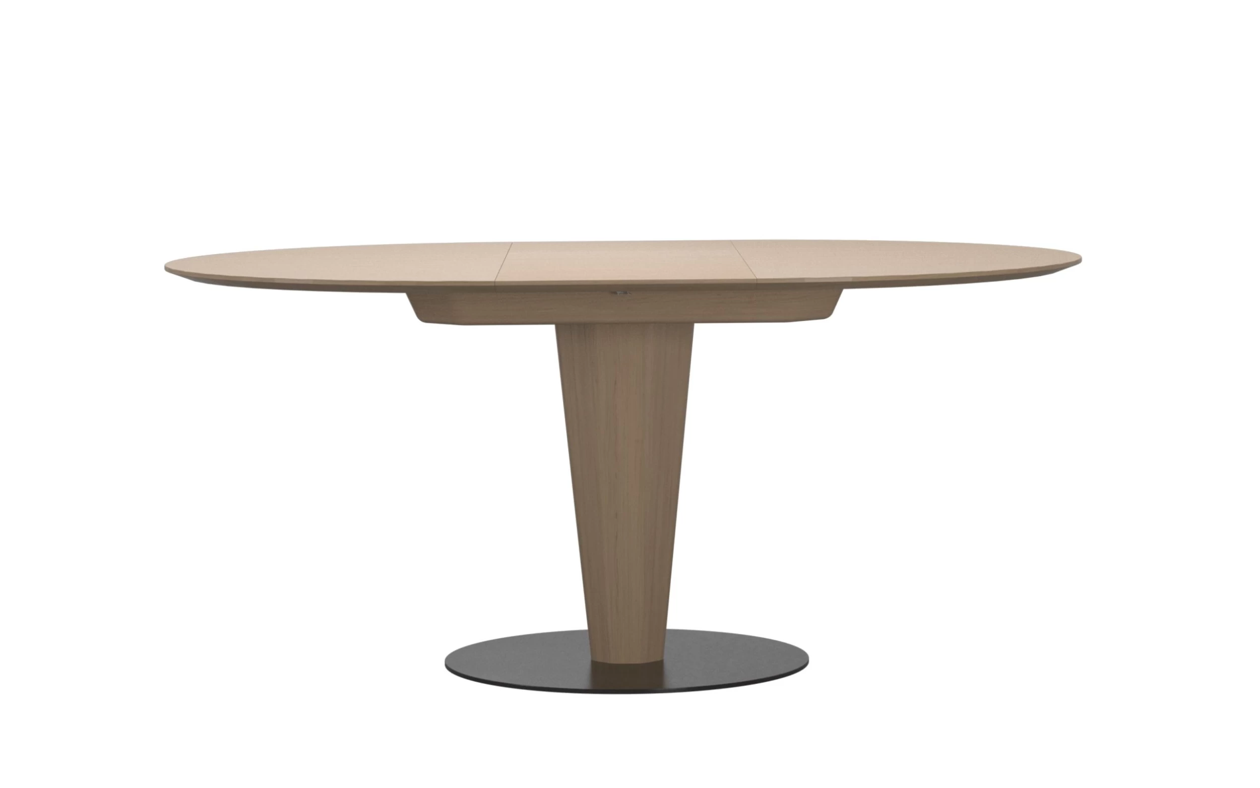 Ausführung der Tischplatte in Eiche Natur furniert, Säule in Eiche Natur furniert, Bodenplatte in schwarz, inklusive 1 innenliegende Zwischenplatte ca.50 cm,