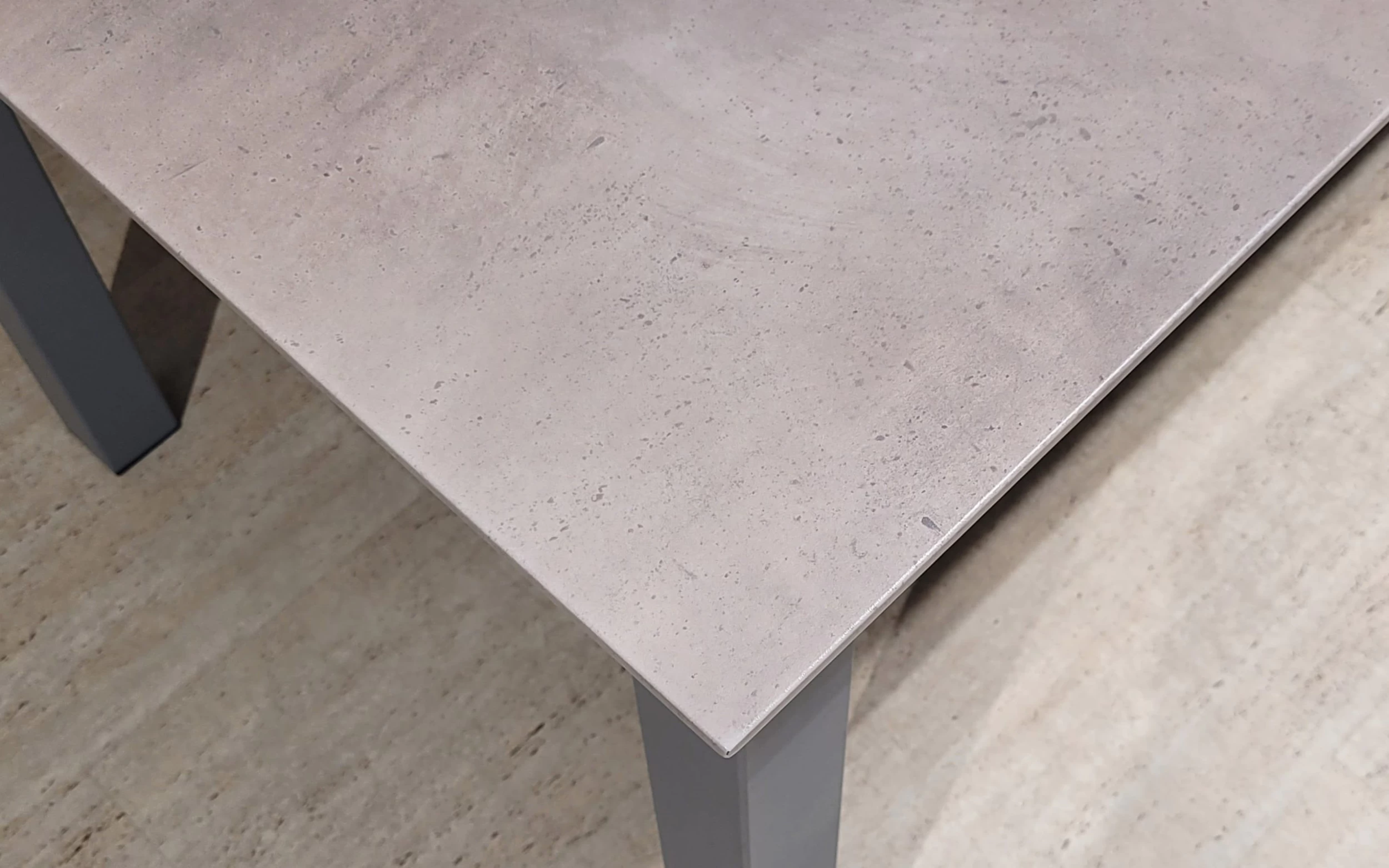 Ausführung mit Tischplatte aus MDF in Beton Nachbildung, Gestell grau gepulvert, Tischplatte ausziehbar,