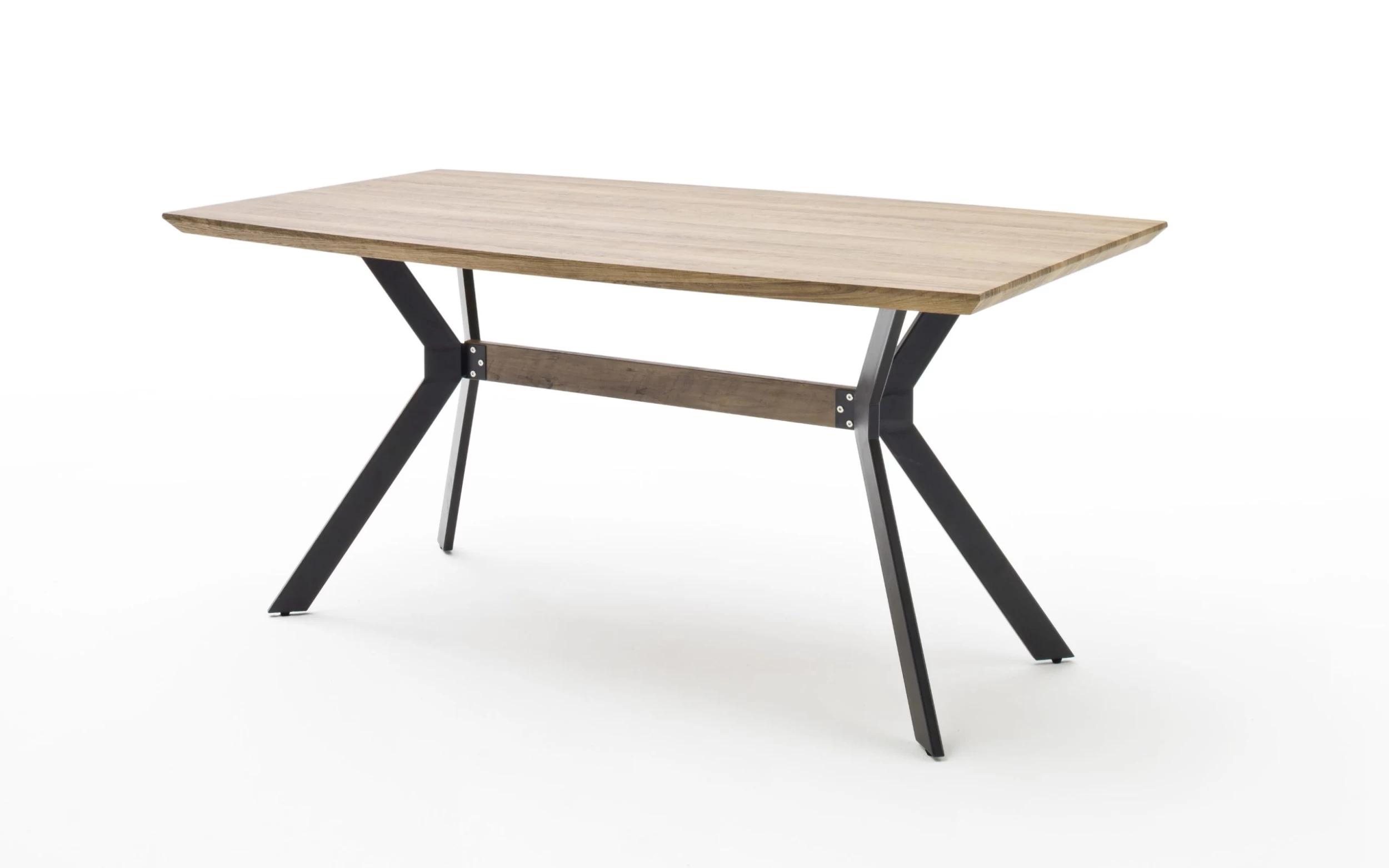 Ausführung der Tischplatte aus MDF in Wildeiche antik Nachbildung, in Bootsform, Kantrohr-Gestell in schwarz matt lackiert,