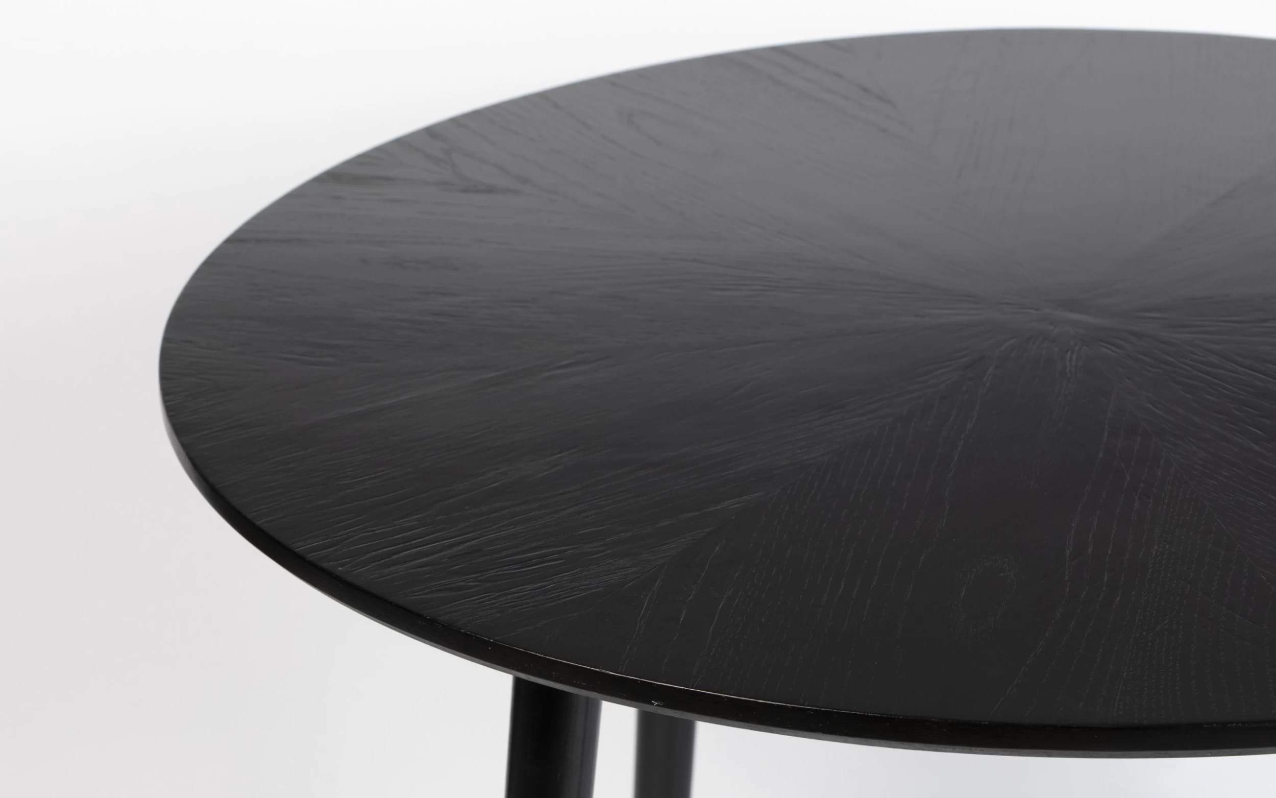 Ausführung der Tischplatte aus MDF mit Eiche furniert in schwarz lackiert, Vierfußgestell aus Eiche massiv in schwarz,