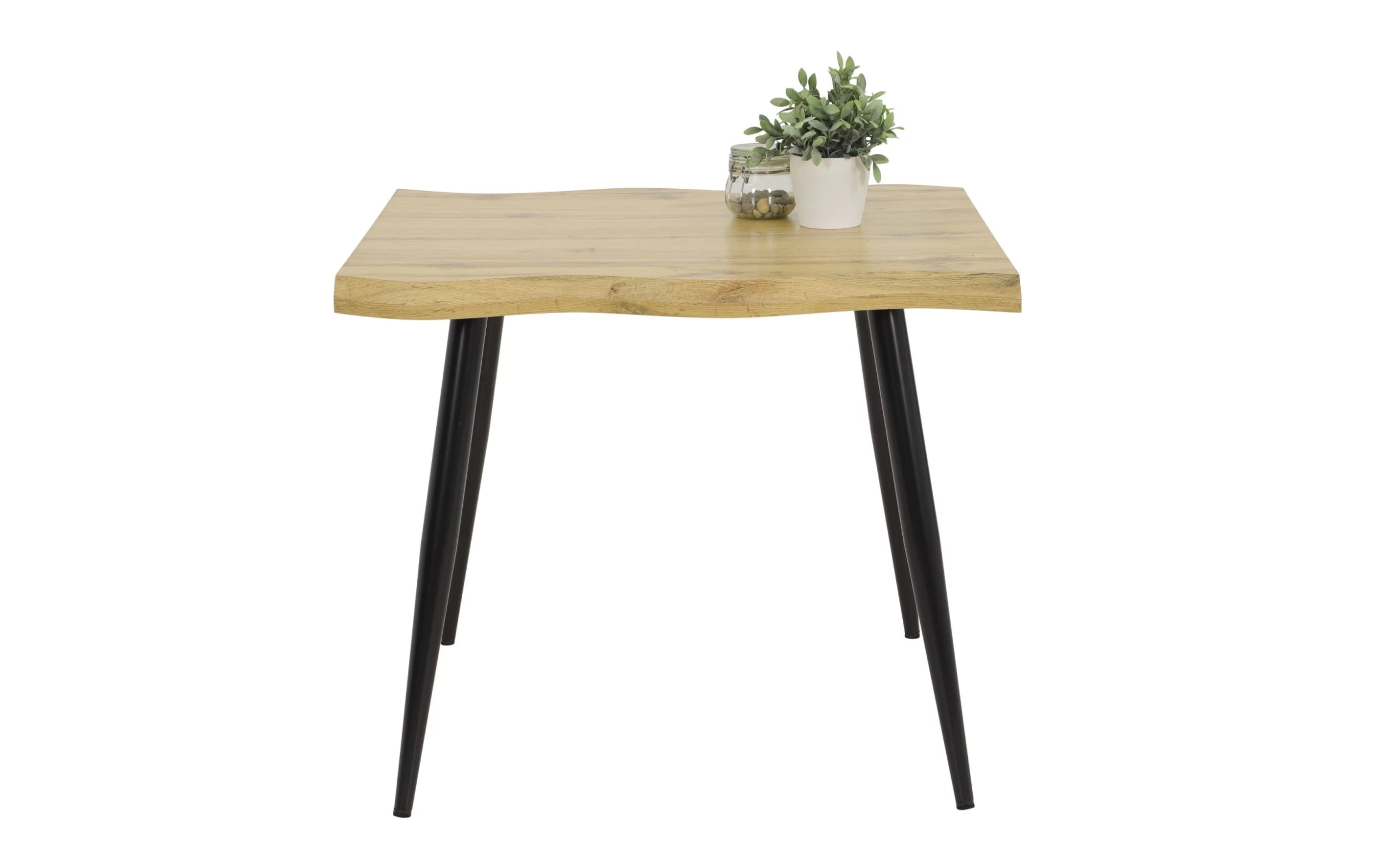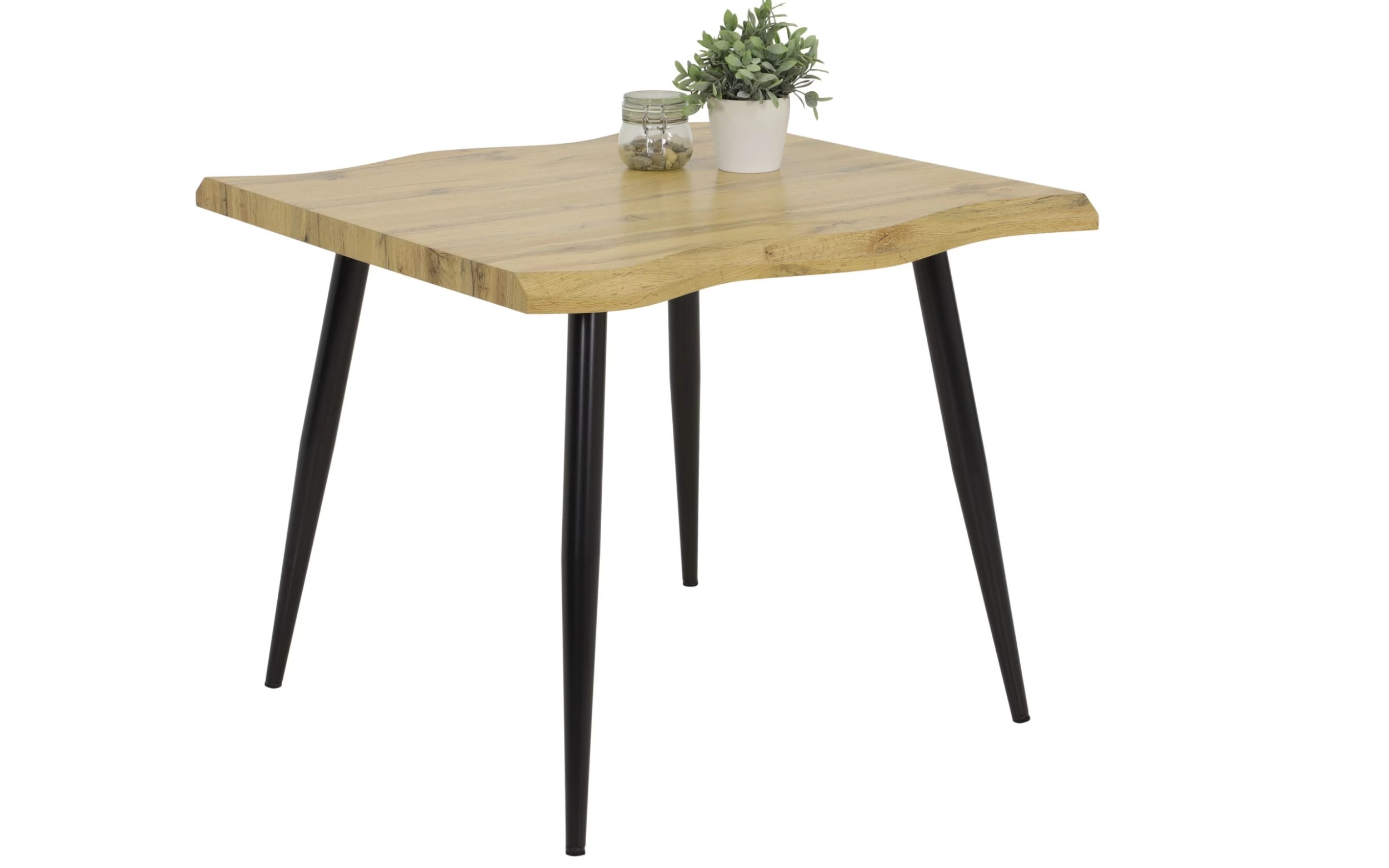 Ausführung Tischplatte aus Wildeiche Nachbildung, mit Baumkante, formschönes Metallgestell in schwarz pulverbeschichtet,