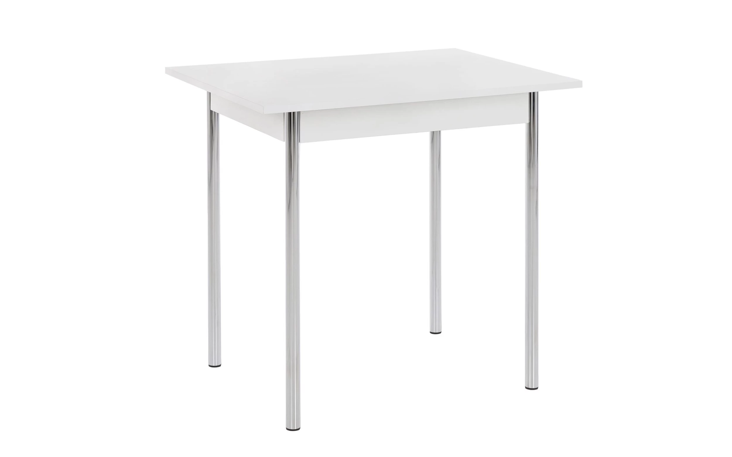 Ausführung in weiß, Füße sind aus verchromtem Metall-Rundrohr mit dem Durchmesser von ca. 28 mm,