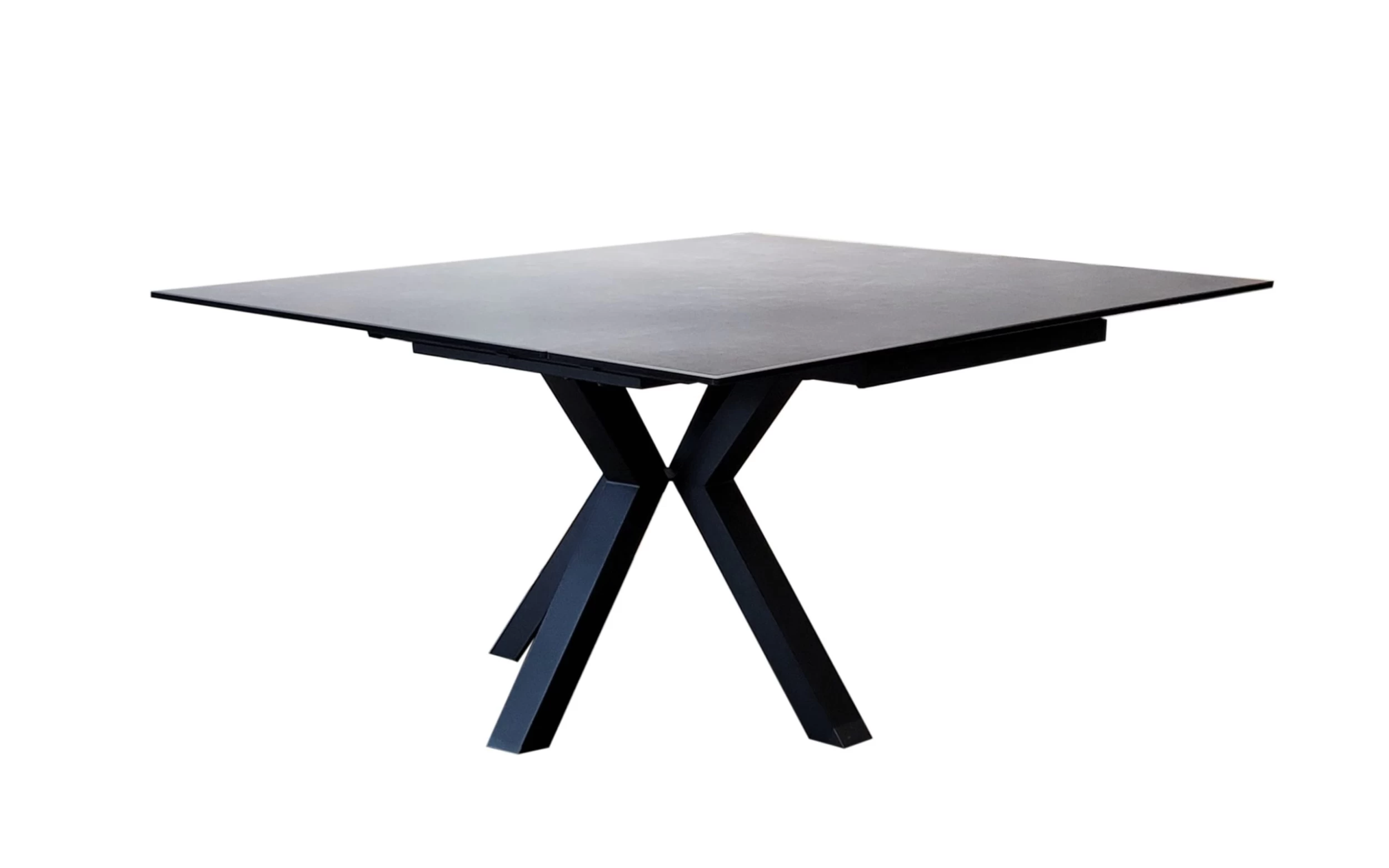 Ausführung der Tischplatte aus Keramik und Sicherheitsglas 13 mm in anthrazit, Gestell aus Metall in schwarz matt lackiert,
