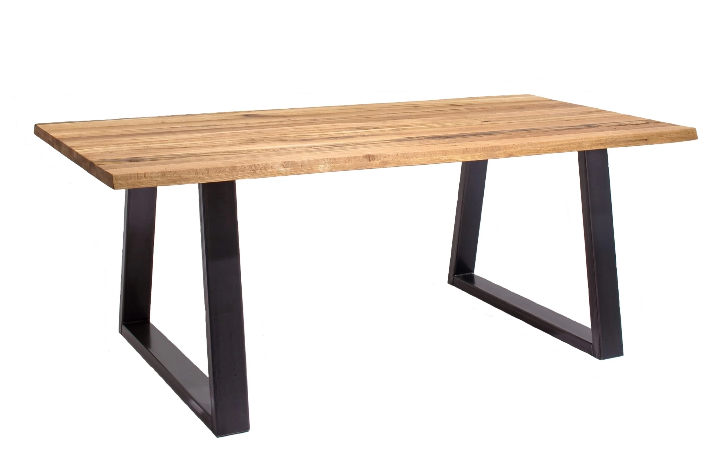 Ausführung der Tischplatte aus massiver Zerreiche mit Gestell in schwarz, pulverbeschichtet,