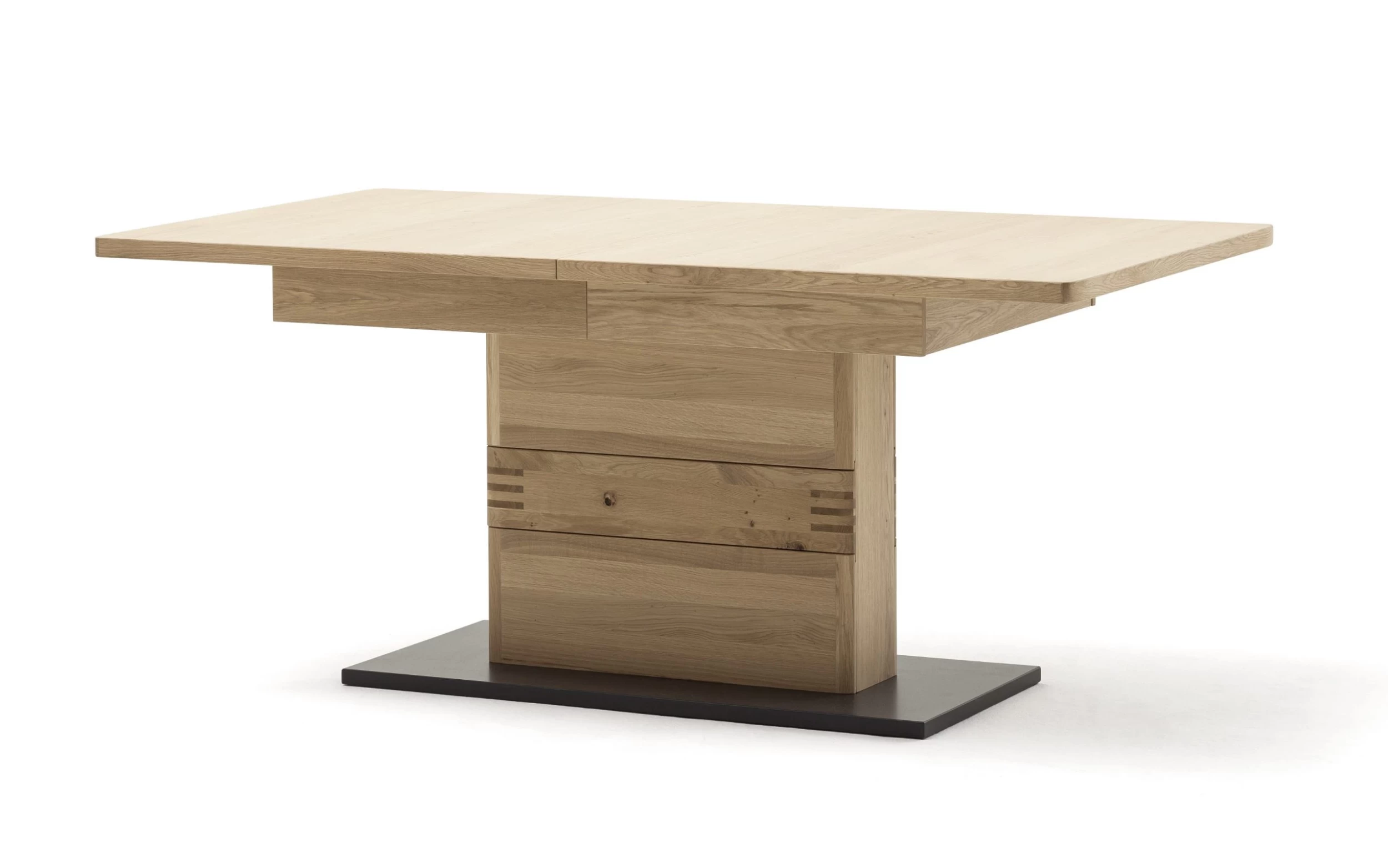 Ausführung in Balkeneiche furniert, Bodenplatte in anthrazit, inklusive Synchronauszug.