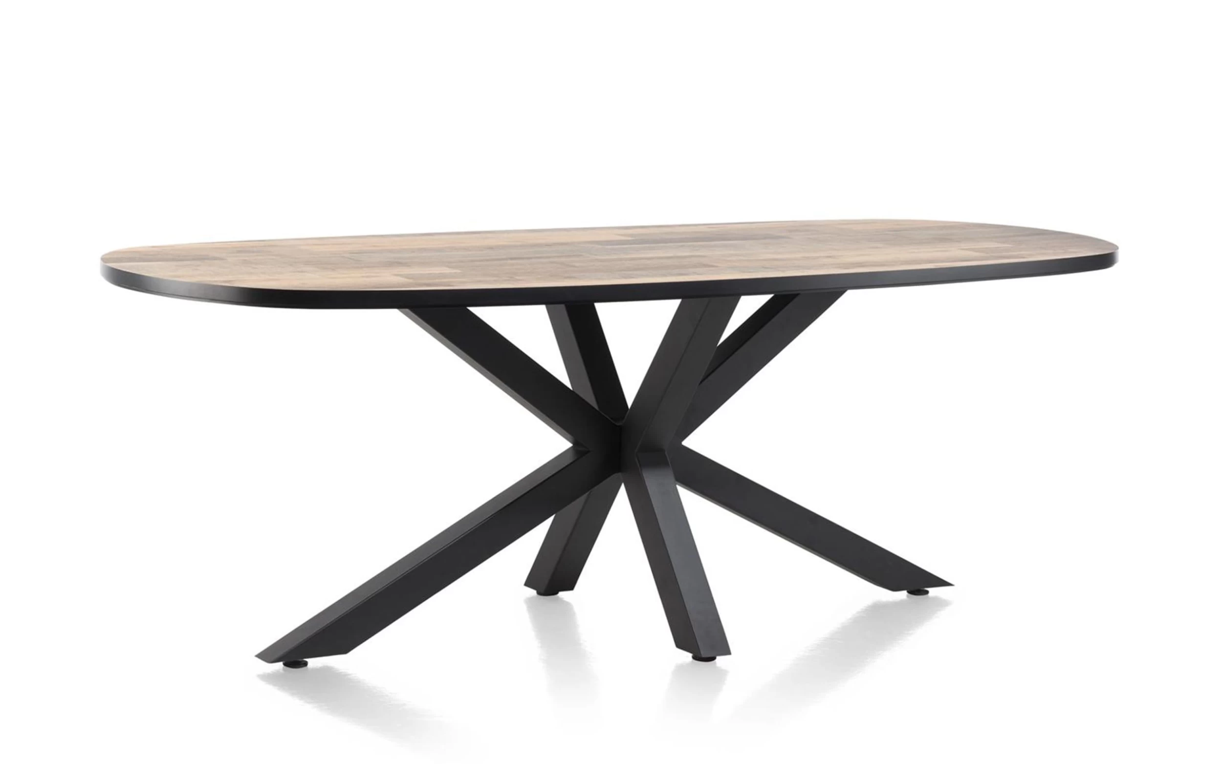 Ausführung der Tischplatte in Driftwood Nachblidung, formschönes Gestell aus Metall in schwarz, L/H/T ca. 220 x 77 x 98 cm.