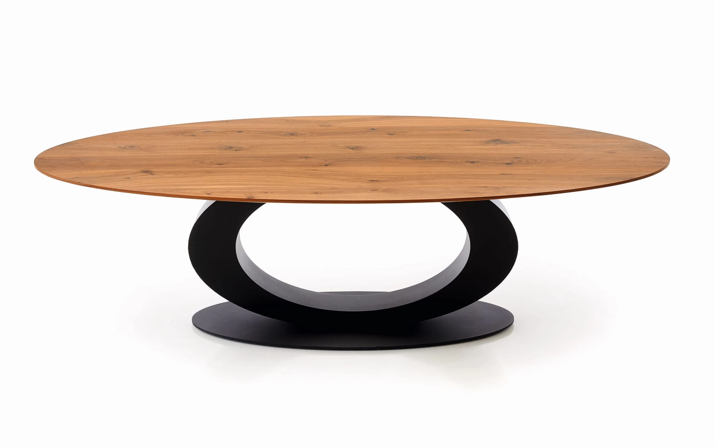 Ausführung der Tischplatte aus Wildeiche furniert, Gestell aus Metall in schwarz matt Struktur,