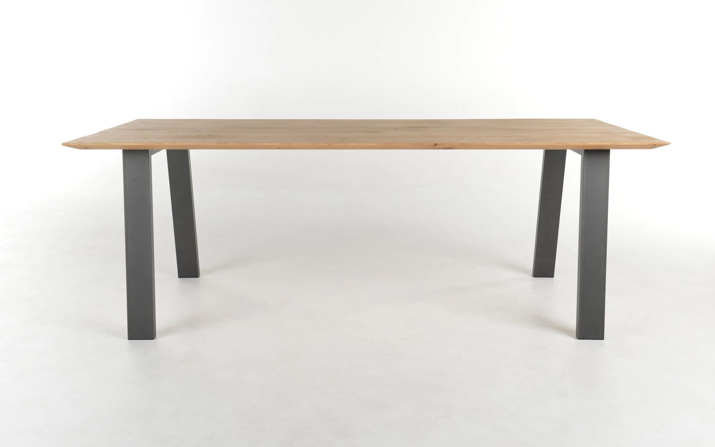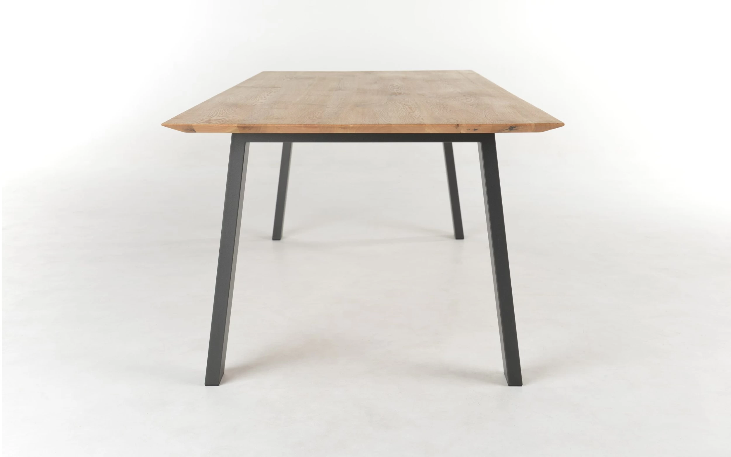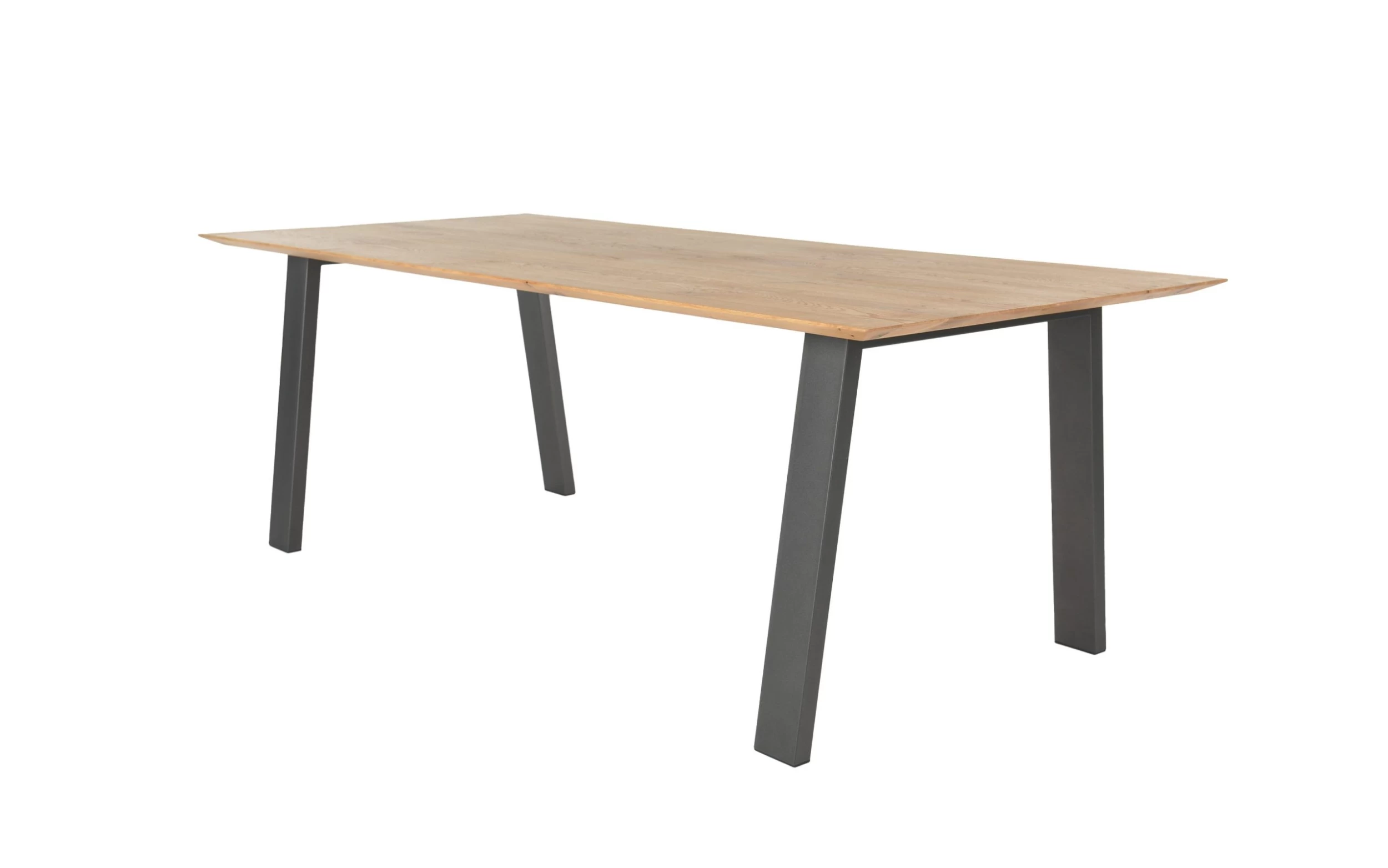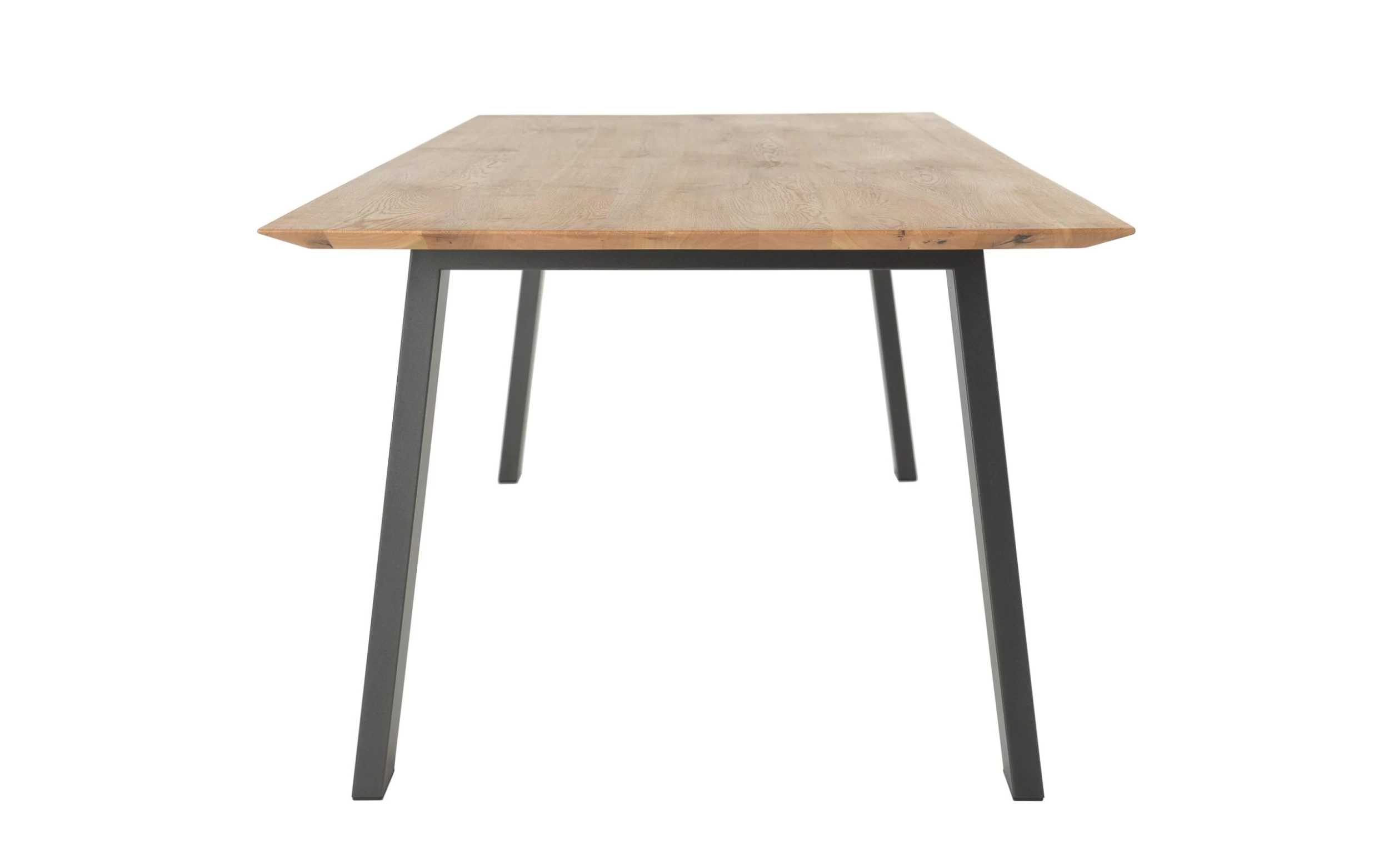 Ausführung mit Tischplatte aus massiver Eiche, astig, geölt, Schweizer Kante, Gestell aus Metall in anthrazit,