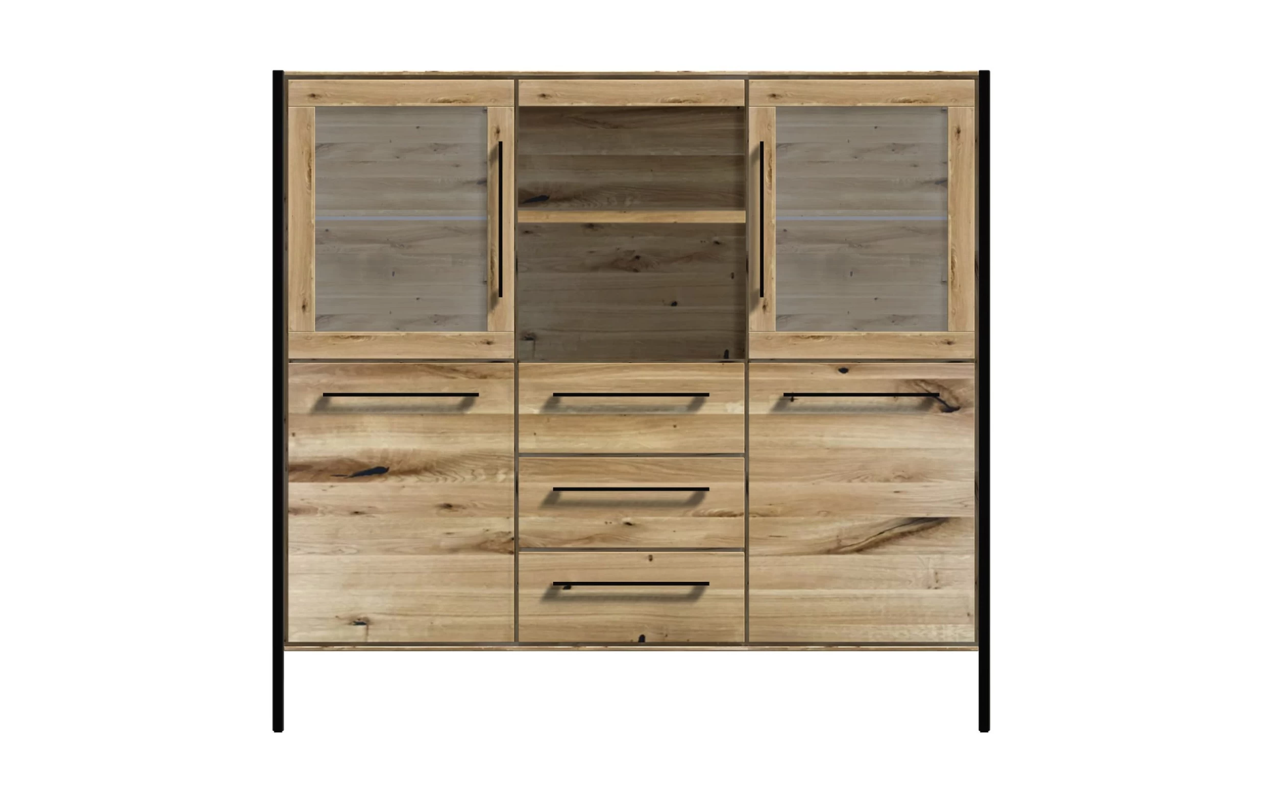 Sideboard Barcelona In Balkeneiche Massiv /Eiche Bianco Furniert, Inklusive Beleuchtung