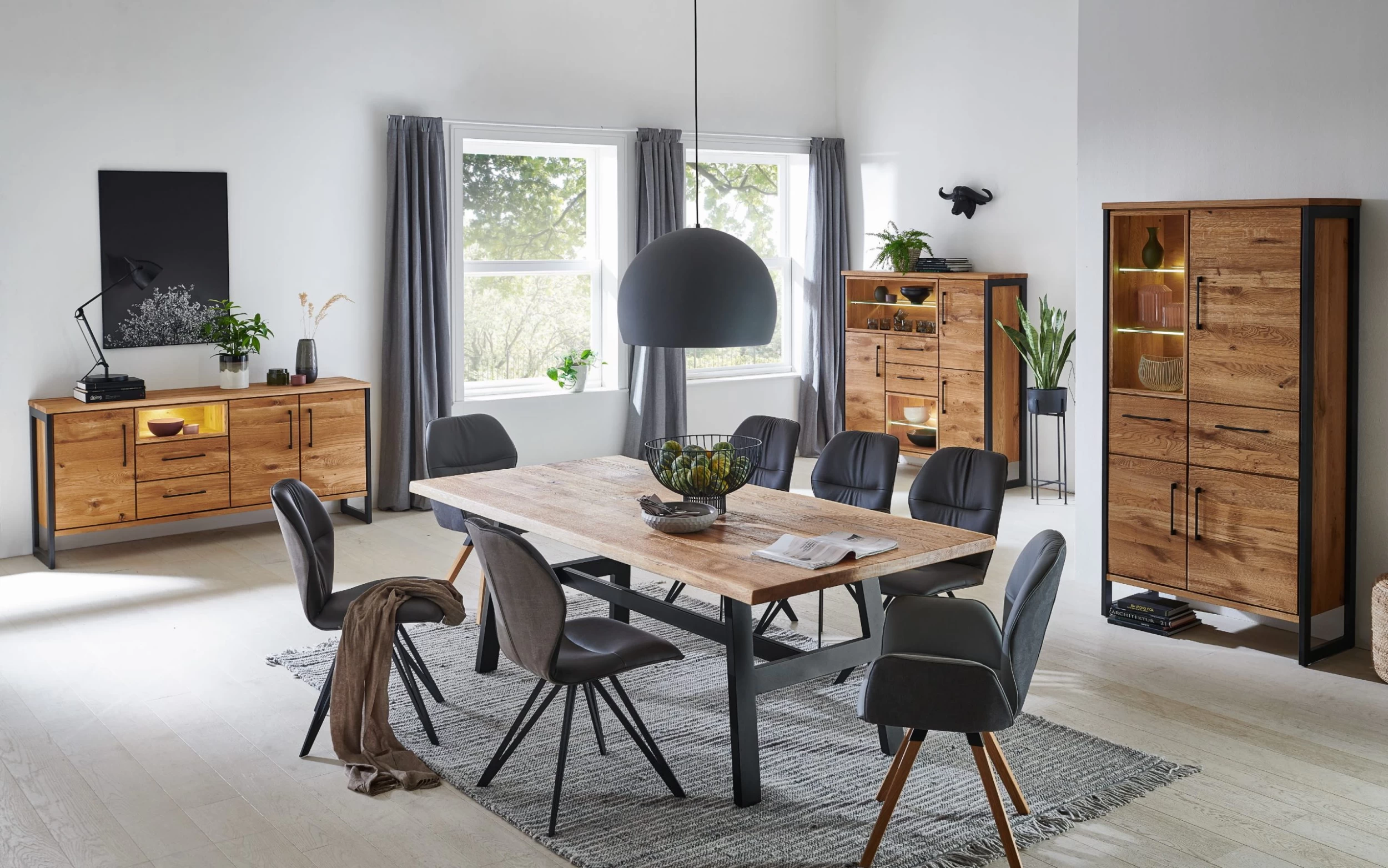 Sideboard Cesena, Schwarzgrau Lackiert, Wildeiche Geölt Massiv