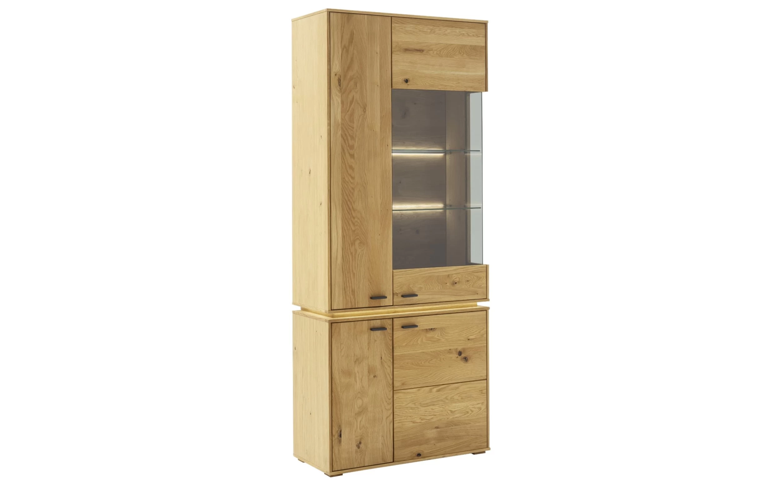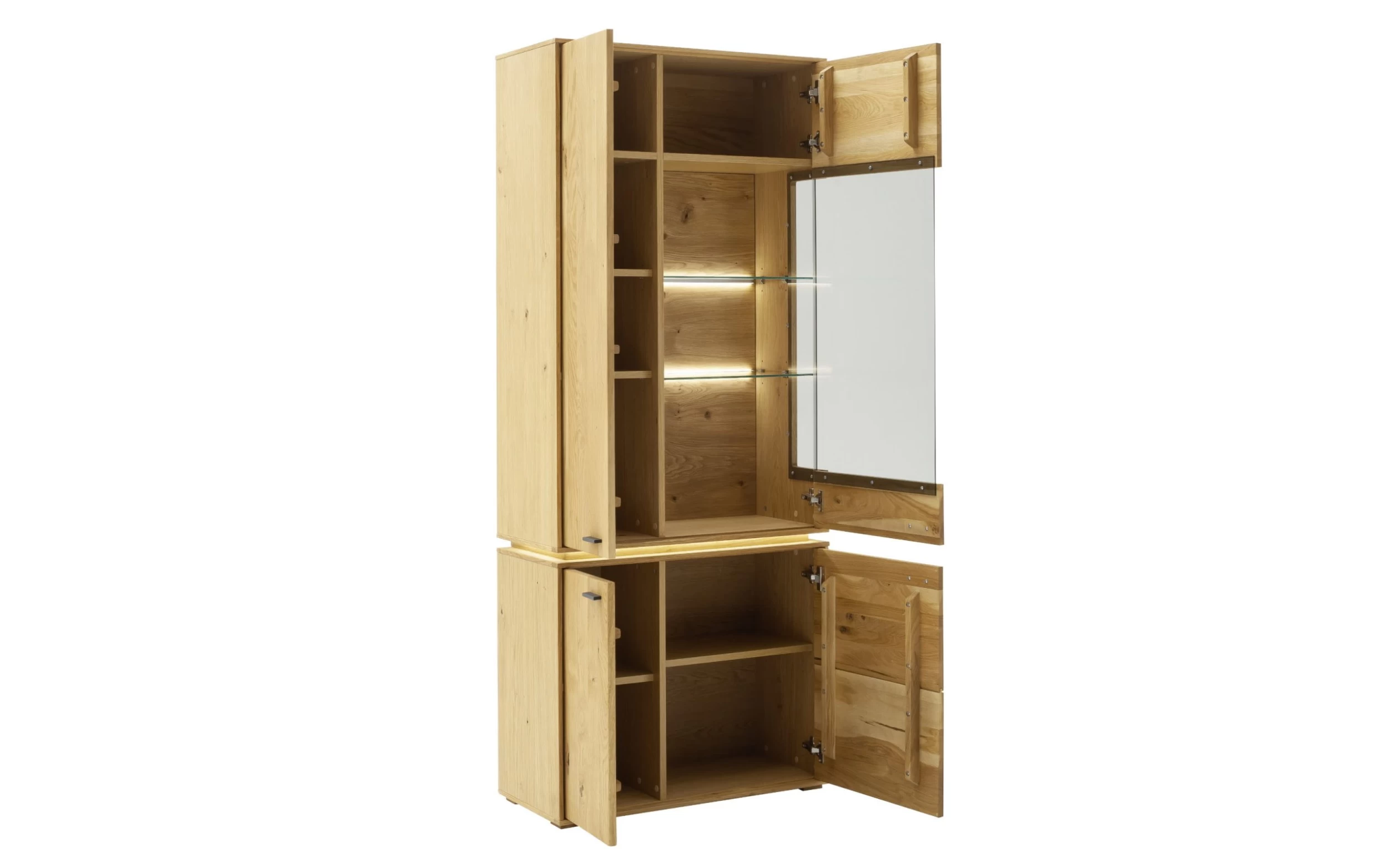 Sideboard Barcelona In Balkeneiche Massiv /Eiche Bianco Furniert, Inklusive Beleuchtung