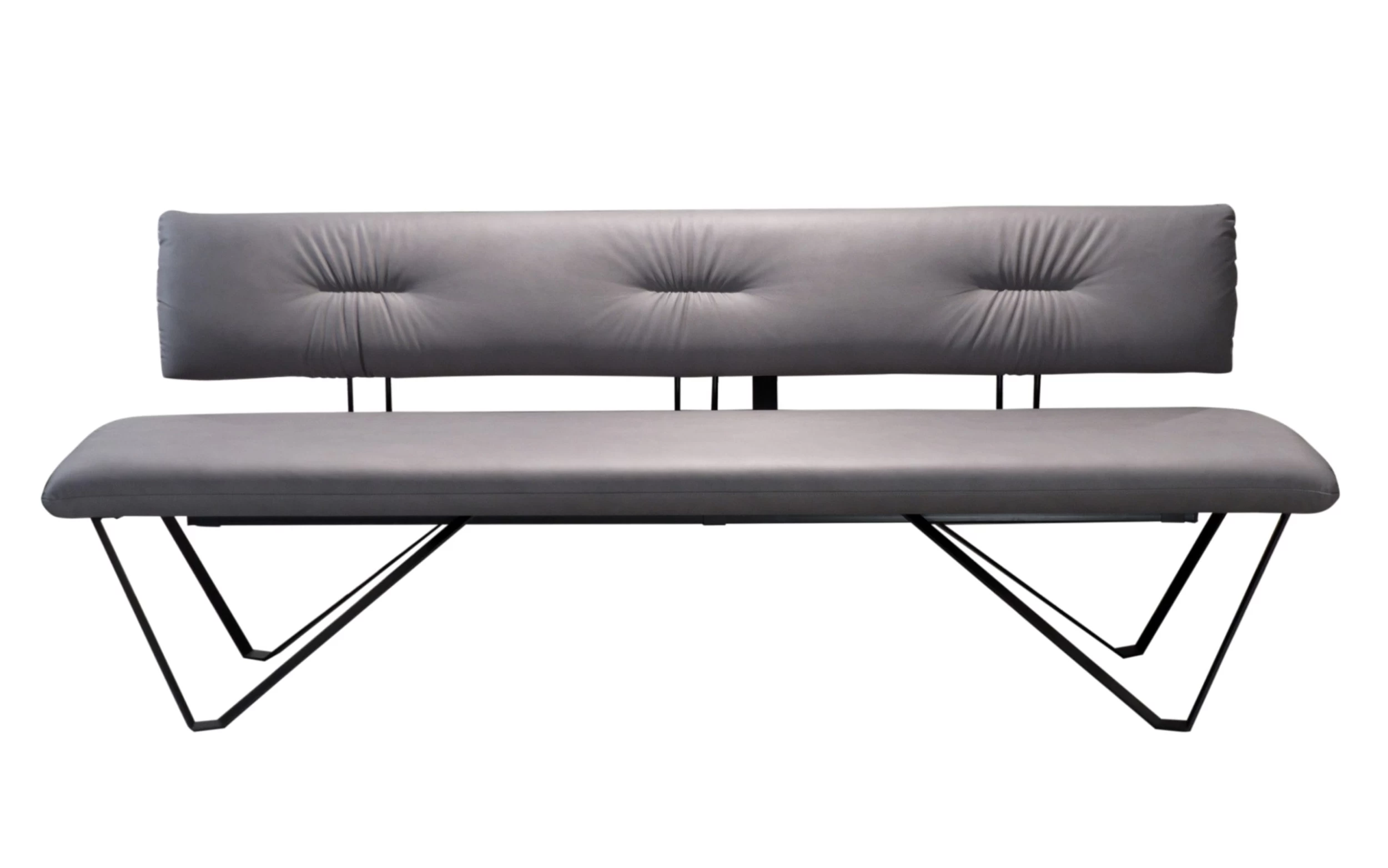 Ausführung Stoff Gavin in hellgrau, Formschönes Metallgestell in schwarz pulverbeschichtet, Rücken echt bezogen.
