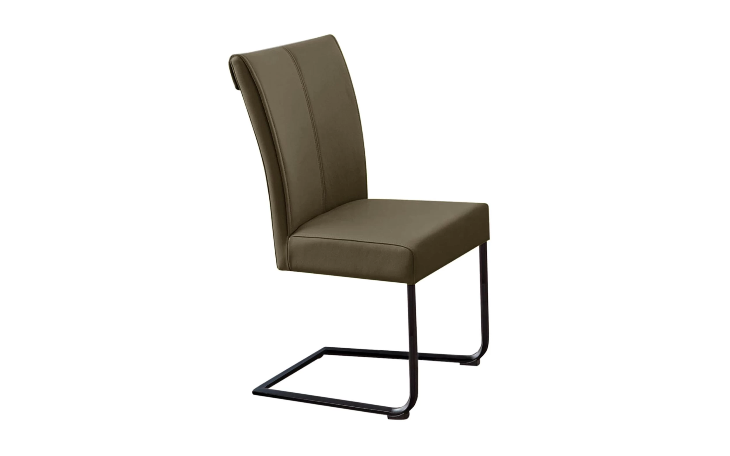 Ausführung mit Bezug aus Echtleder Napoli in olivgrün, Flacheisengestell in schwarz matt, Rücken mit Polsterdoppel, Sitz mit Gurt-Federung,