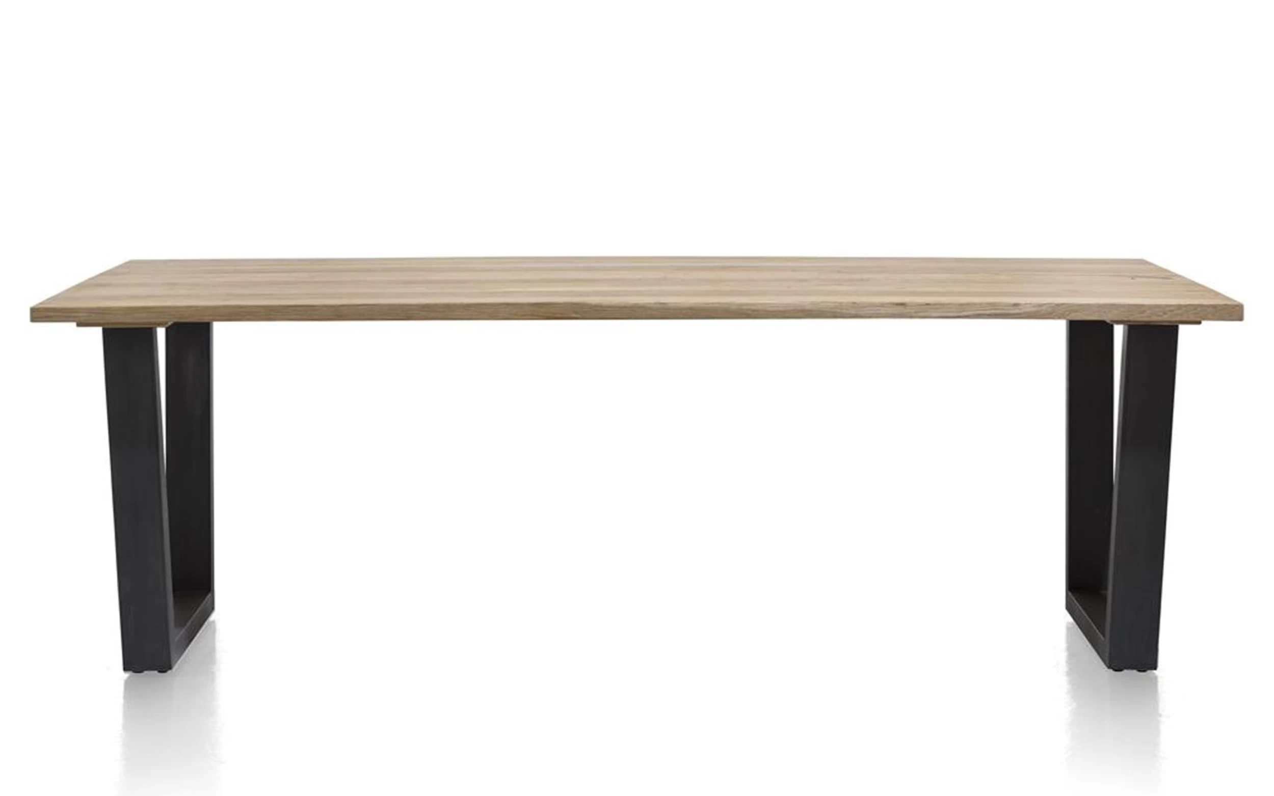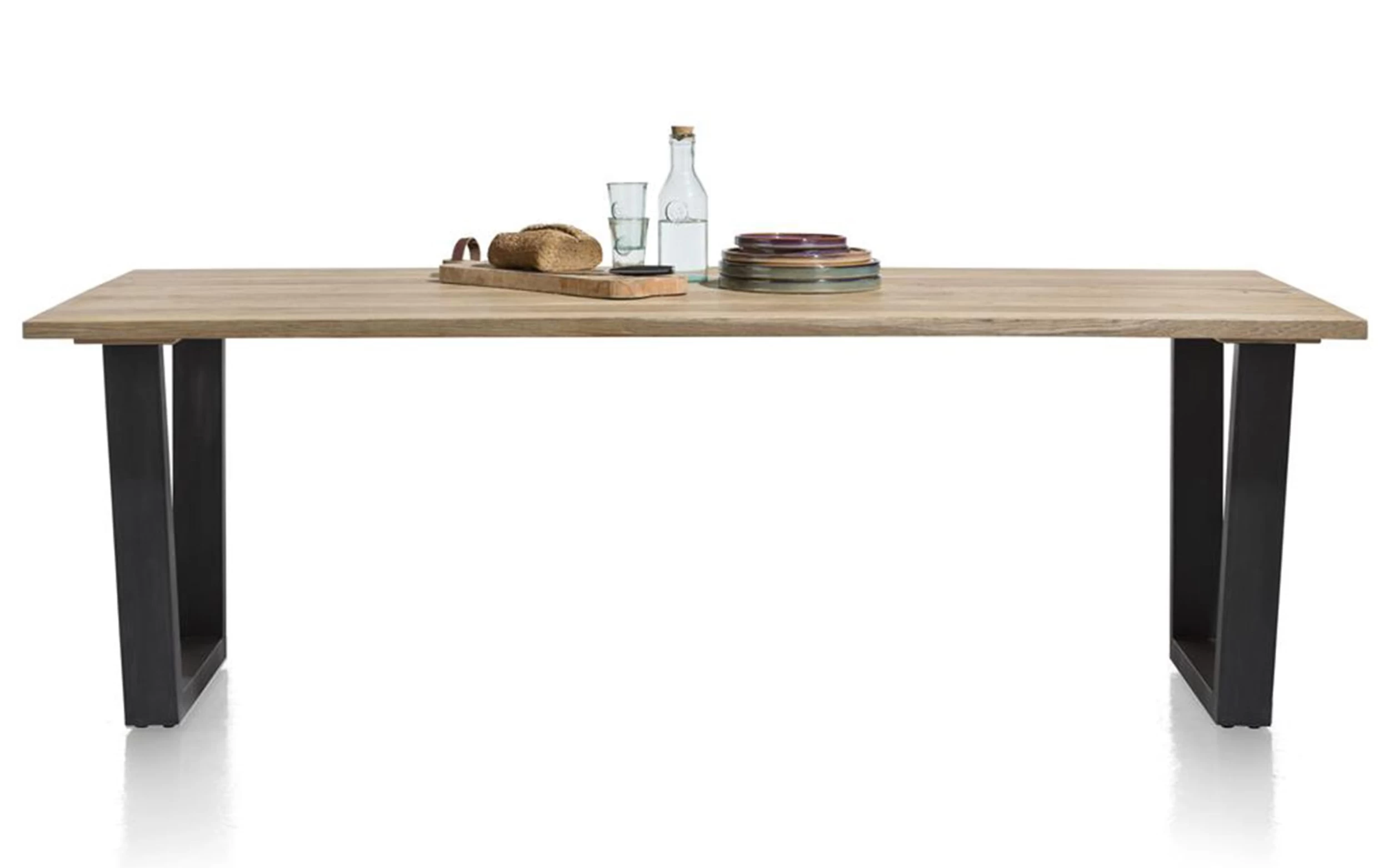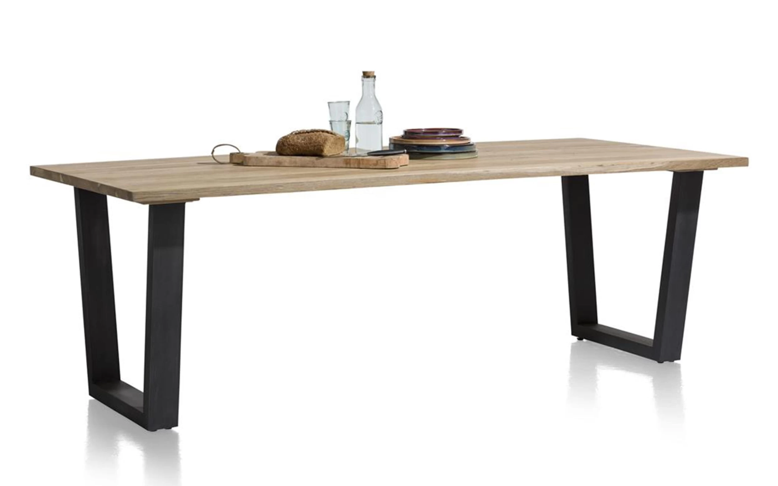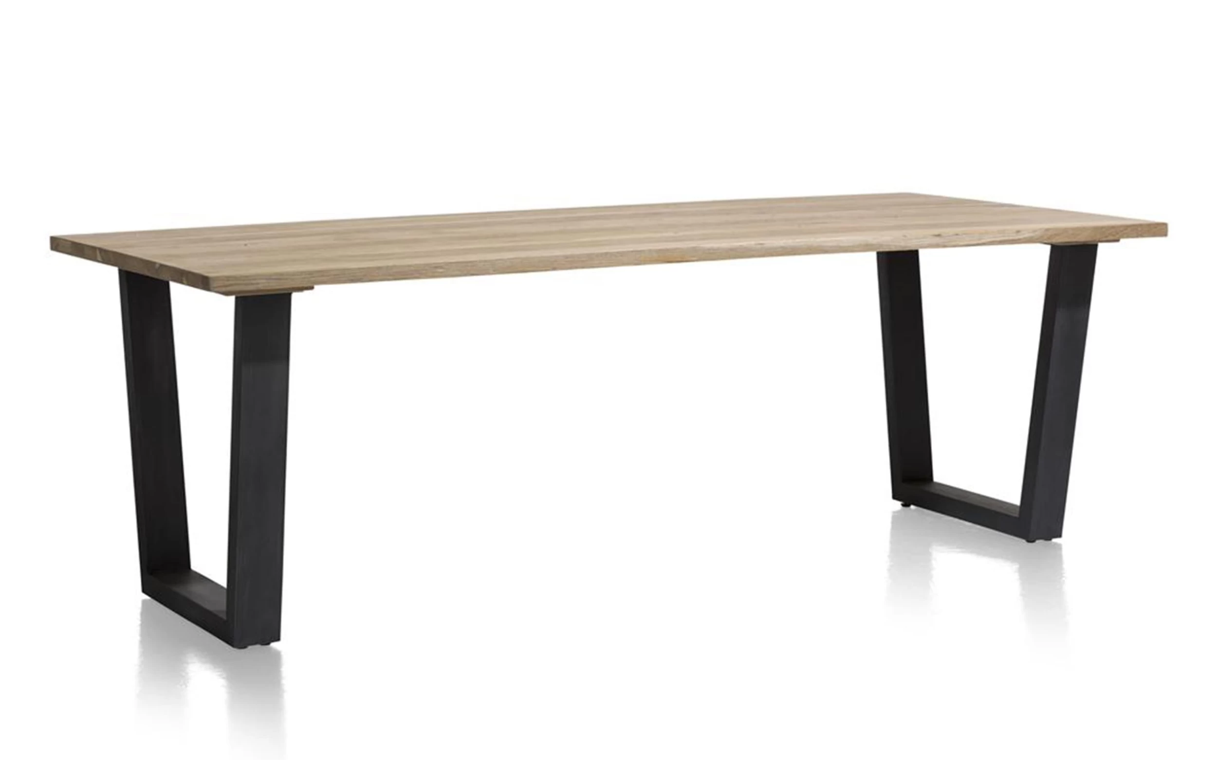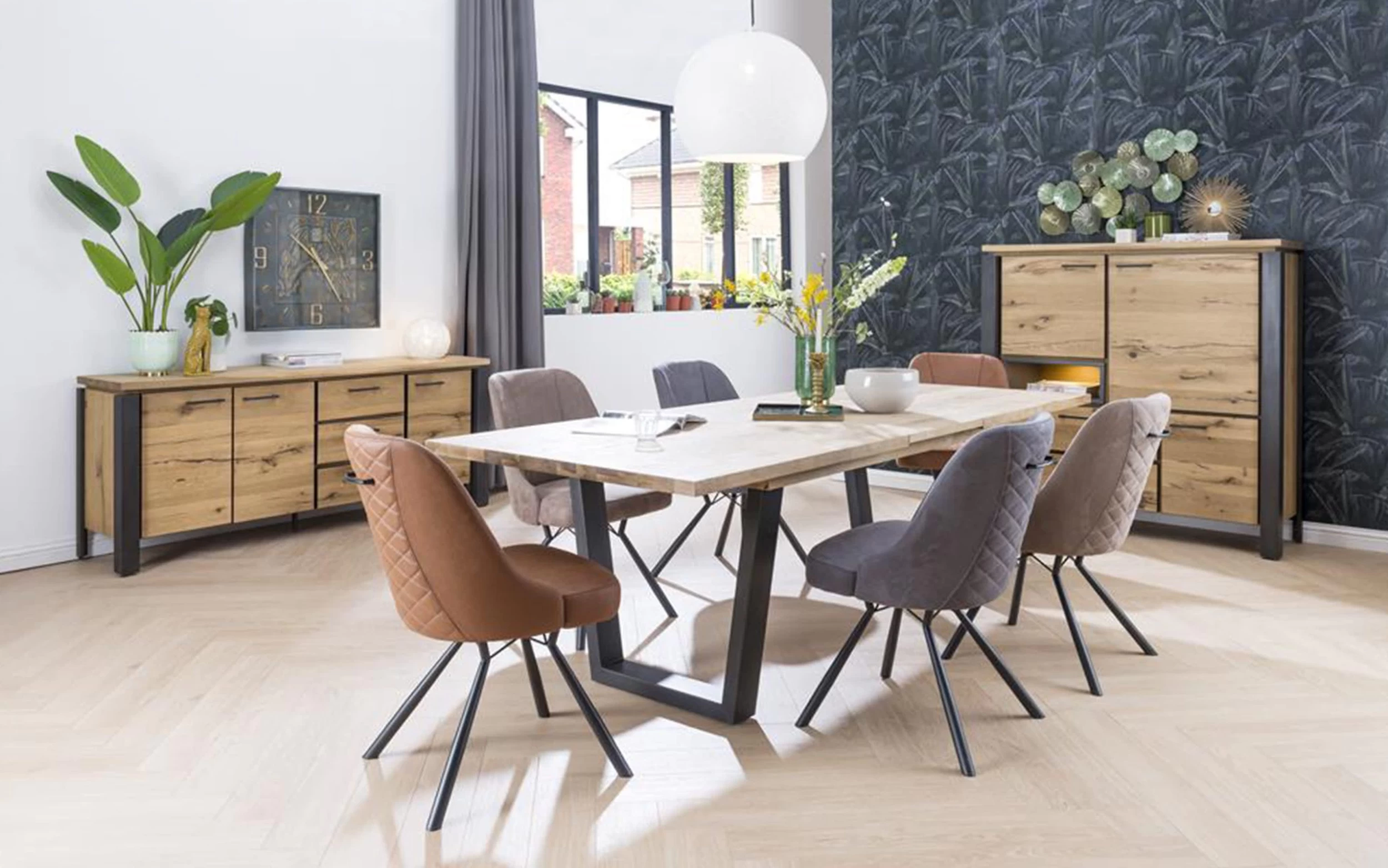 Ausführung Tischplatte aus Eichenholz in der Farbe Railway Brown, Gestell aus Metall, inklusive Ausziehfunktion,