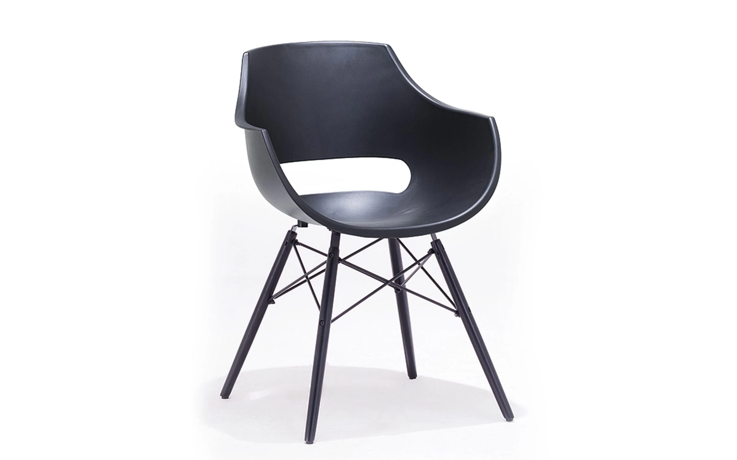 Ausführung der Sitzschale aus Kunststoff in schwarz, Gestell aus Buche in schwarz matt lackiert,