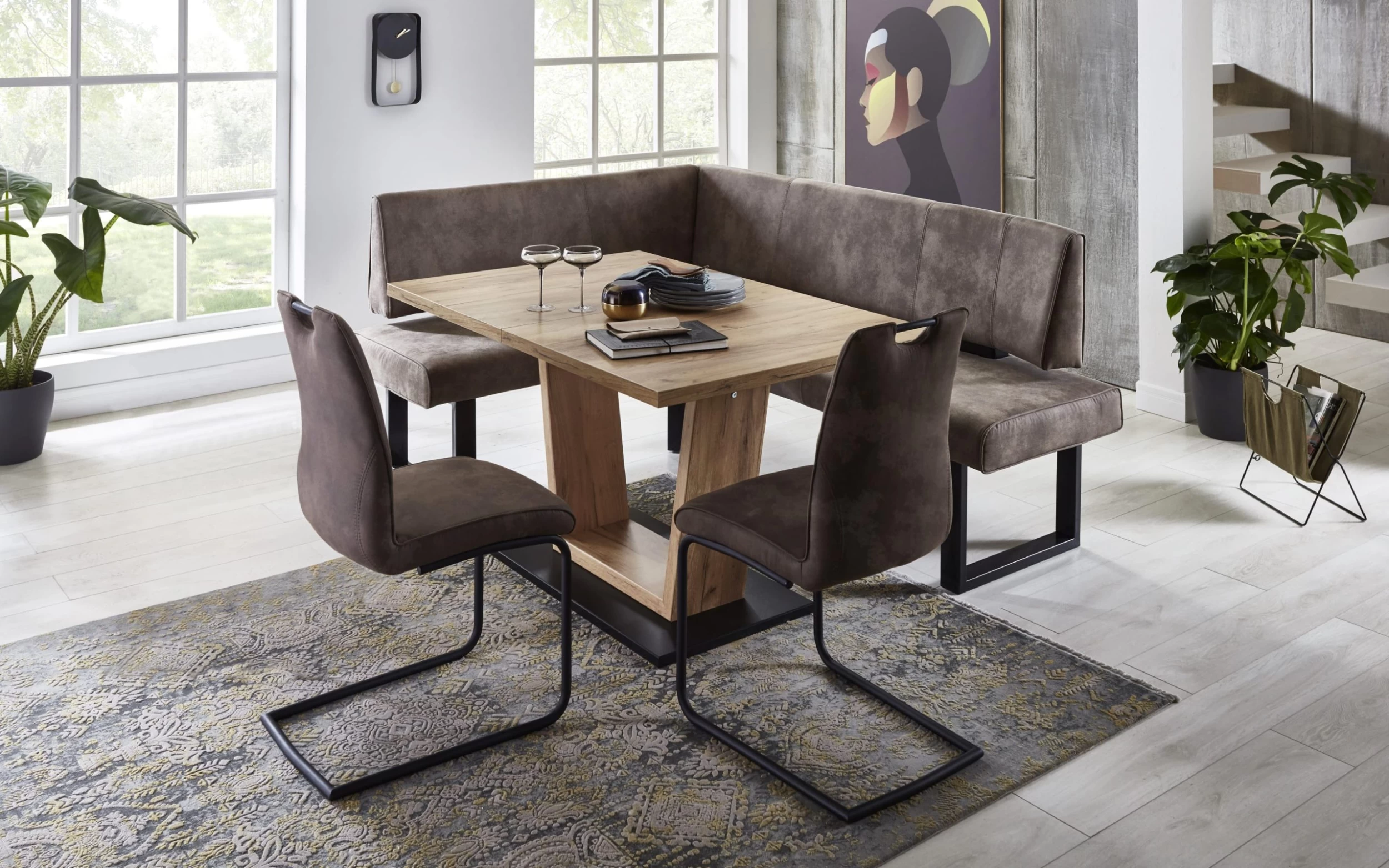 Ausführung Stoff Aberdeen in stone, Wellen-Federung im Sitz, Rundrohrgestell aus Eisen in schwarz,