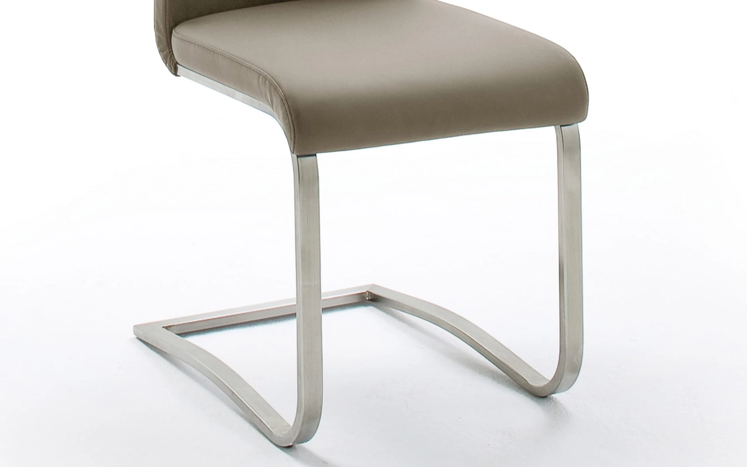 Ausführung Leder in cappuccino, Flachrohr-Gestell aus gebürstetem Edelstahl, bis 130 kg belastbar, B/H/T ca. 43 x 103 x 52 cm.