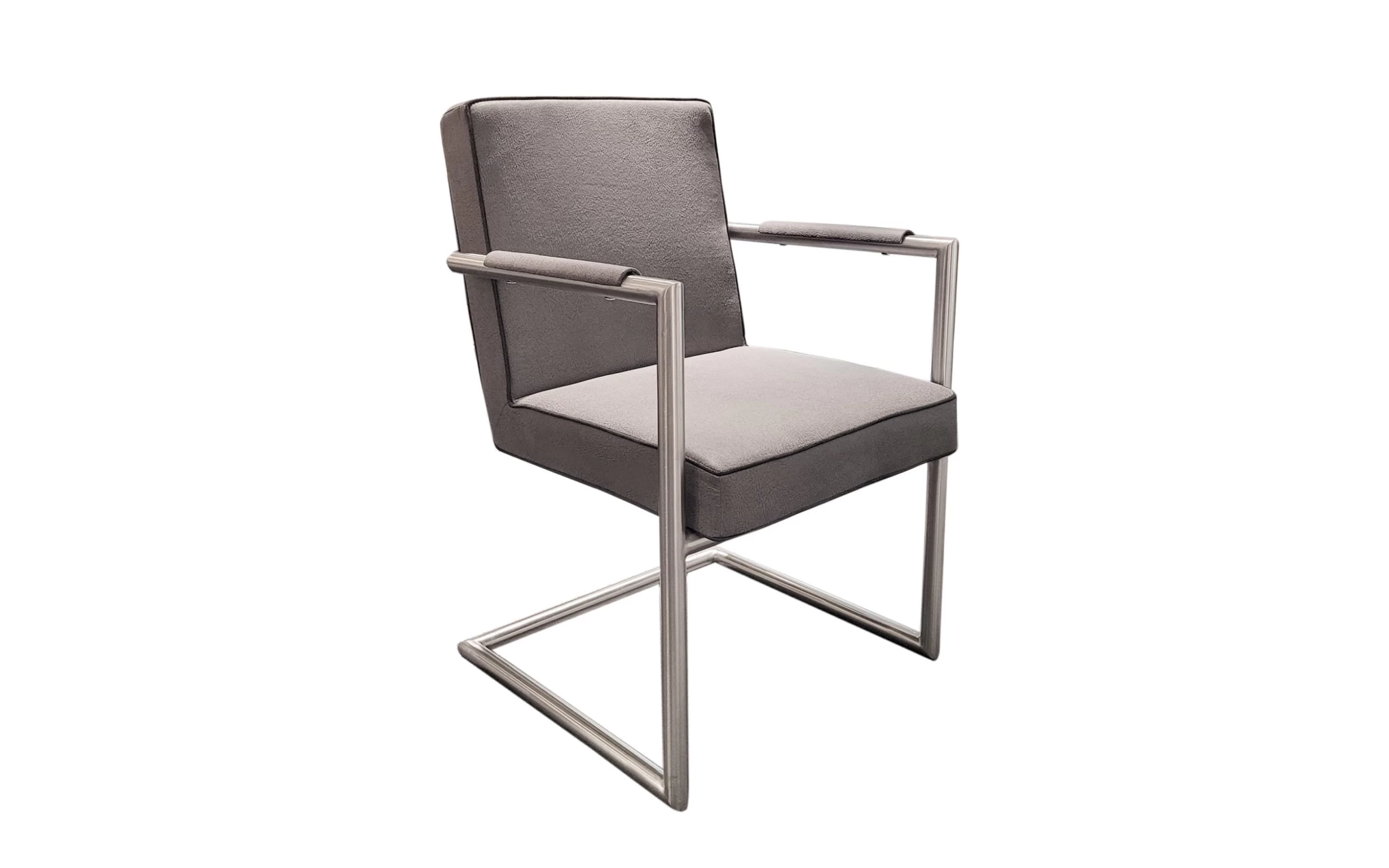 Ausführung mit Mikrofaserbezug in dunkelgrau, Gestell aus Edelstahl,