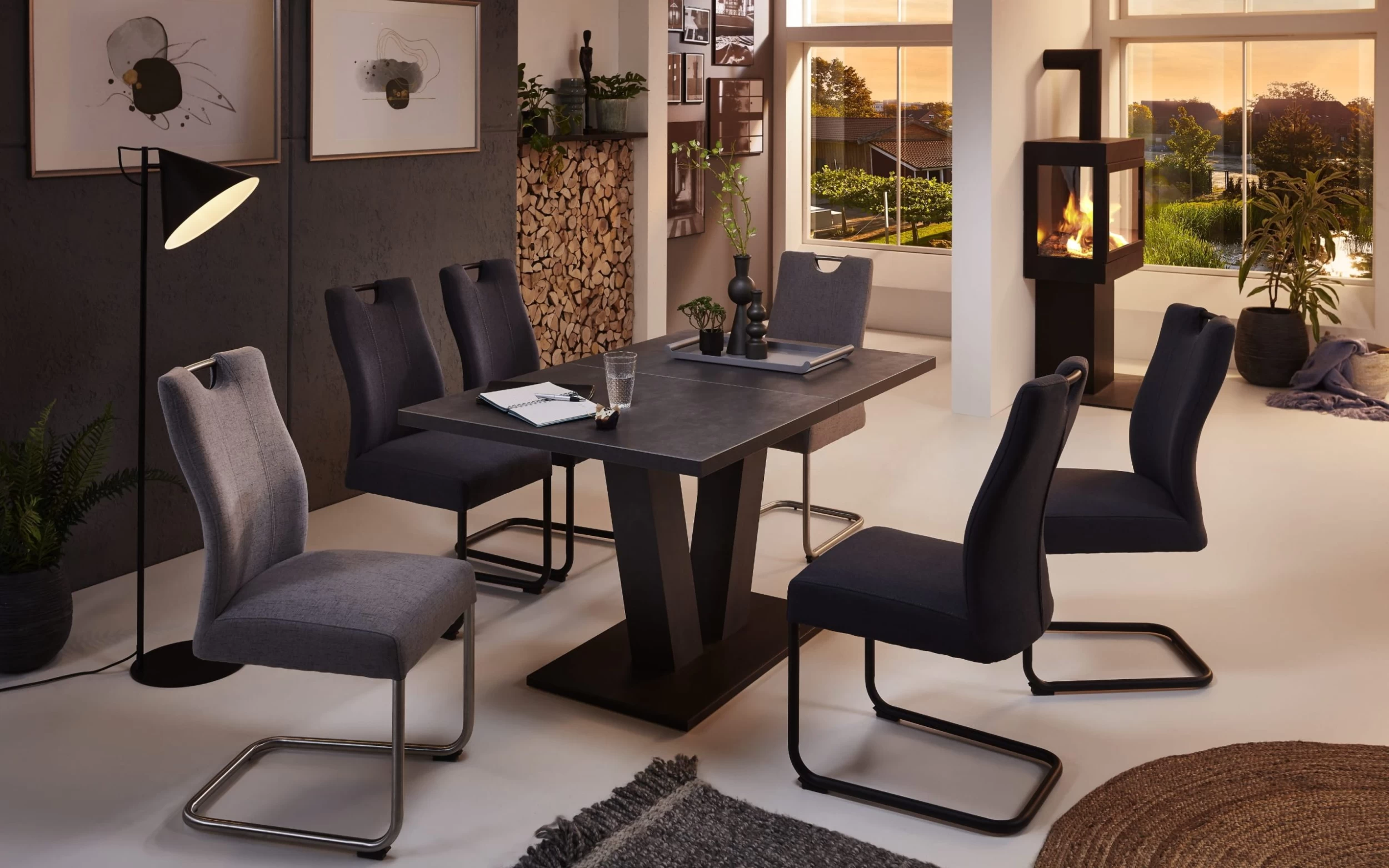 Ausführung Stoff in dark blue, Gestell in schwarz pulverbeschichtet.