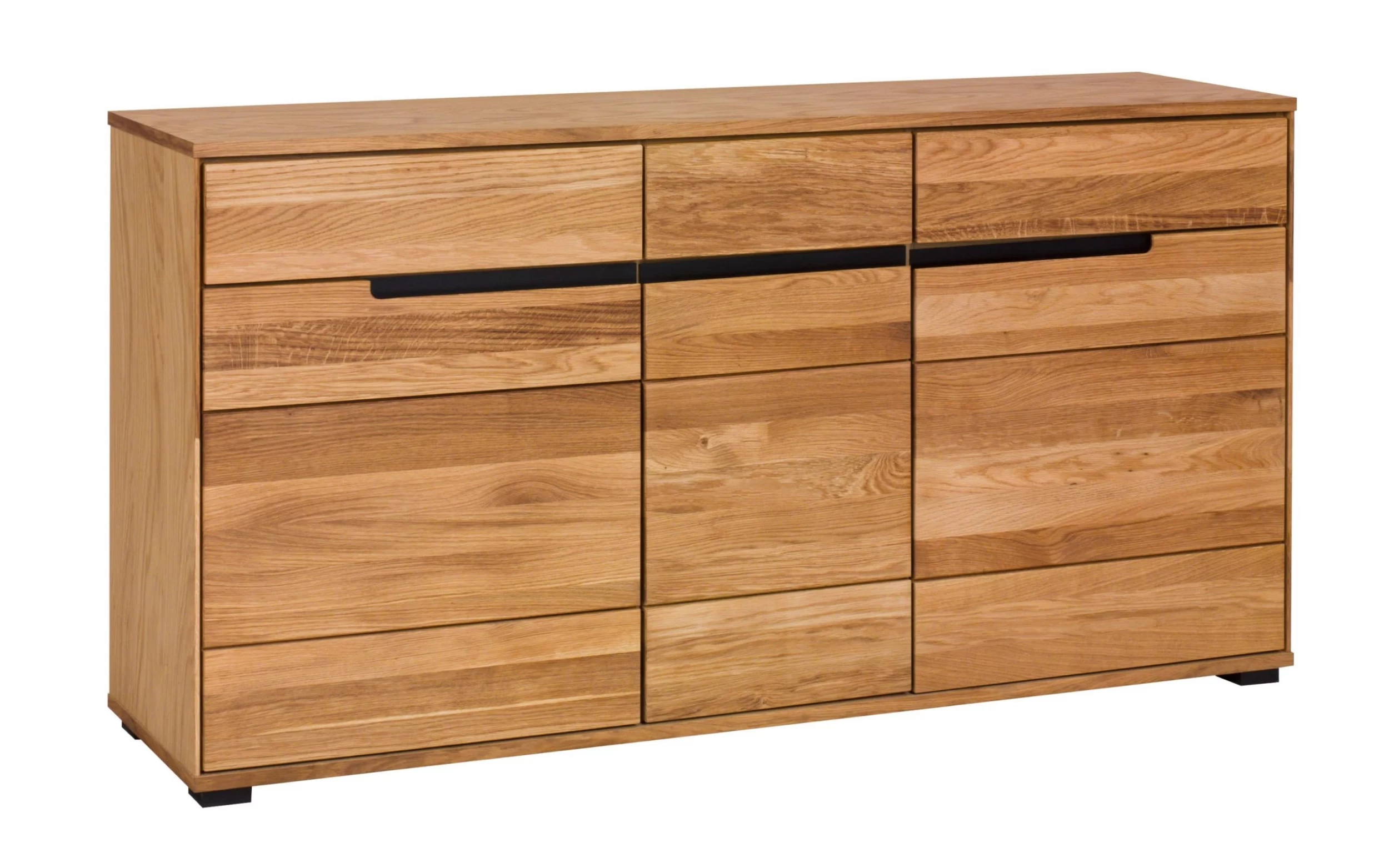 Ausführung der Front in Eiche massiv, Korpus in Eiche furniert, 3 Türen, 3 Schubkästen,