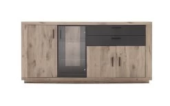Sideboard Cesena, Schwarzgrau Lackiert, Wildeiche Geölt Massiv