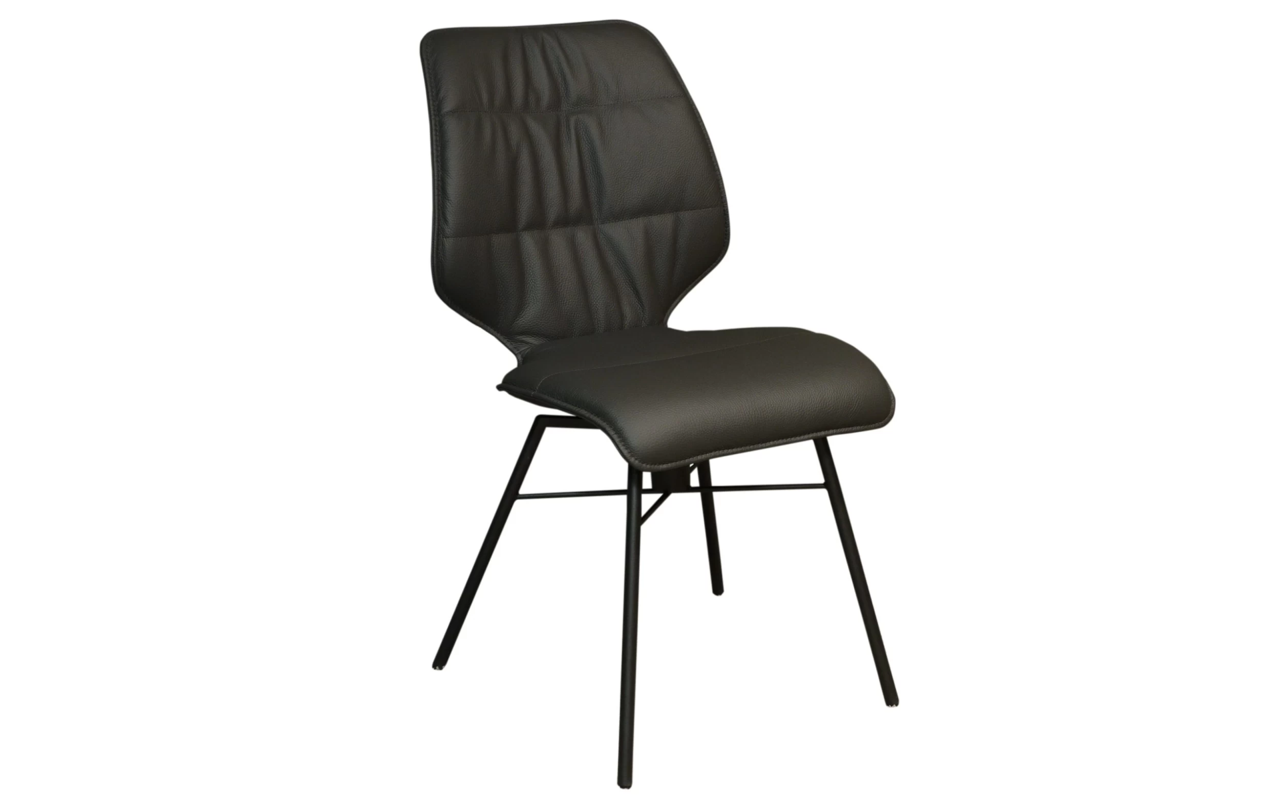 Ausführung Leder in graniet, formschönes 4-Fuß Gestell aus Metall in anthrazit pulverbeschichtet, inklusive Drehfunktion mit automatischem Rückholmechanismus, Rücken echt bezogen,