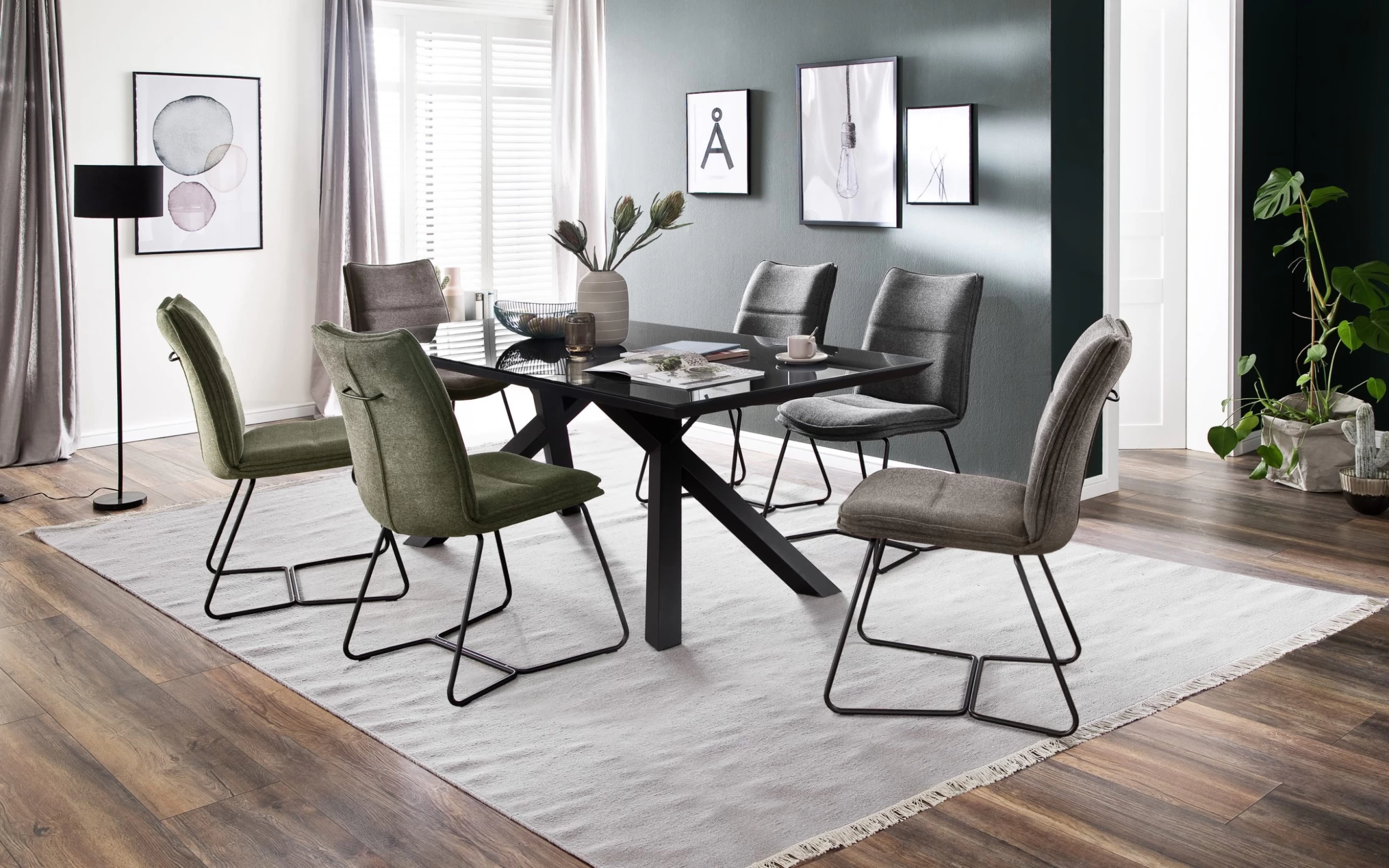 Ausführung Stoff Chenille in cappuccino, Gestell in schwarz matt lackiert, bis zu 120 kg belastbar.