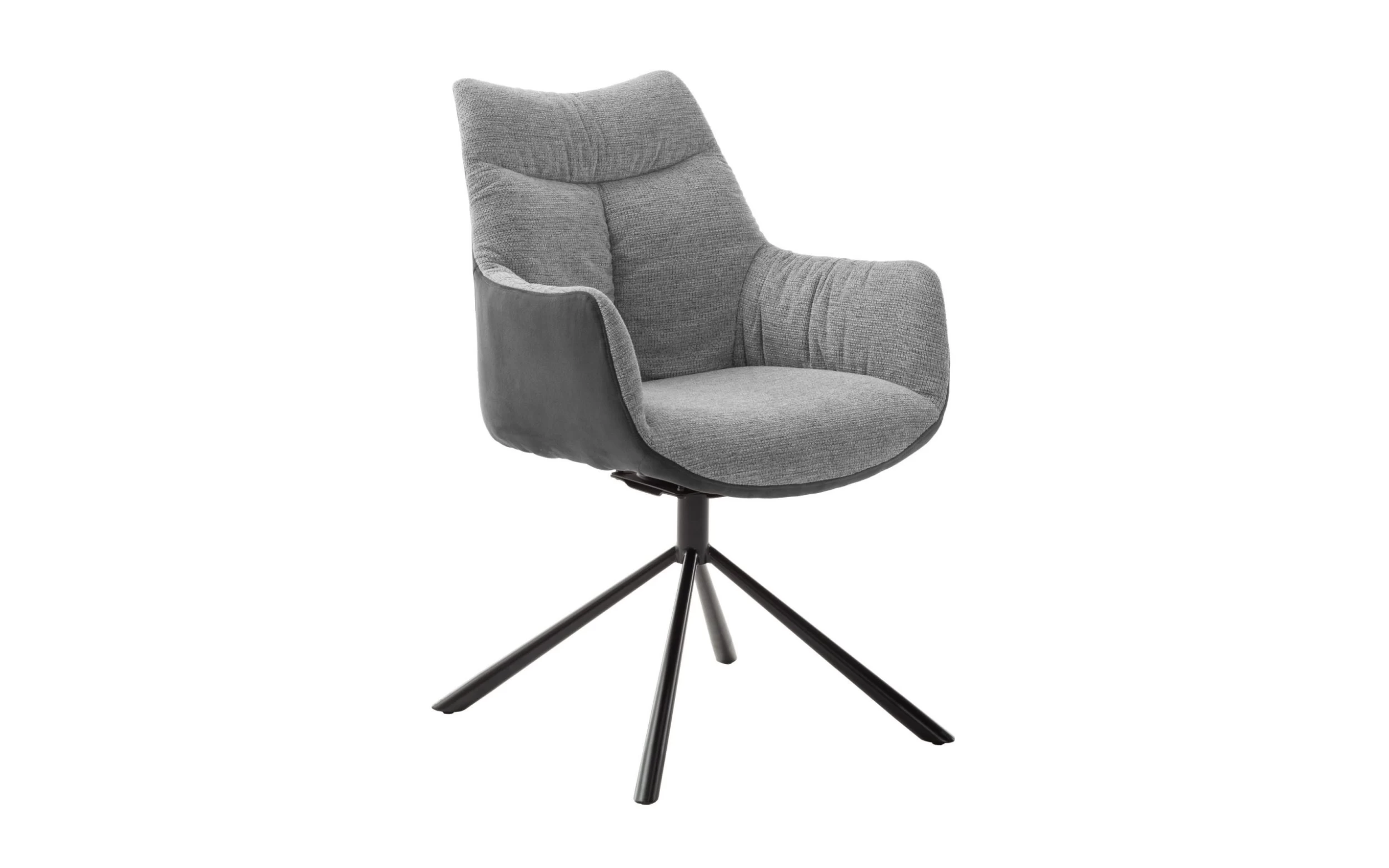 Ausführung Stoff Innenfläche Chenille Nachbildung, außen Vintagelook in dunkelgrau, Gestell aus Metall in schwarz matt lackiert.