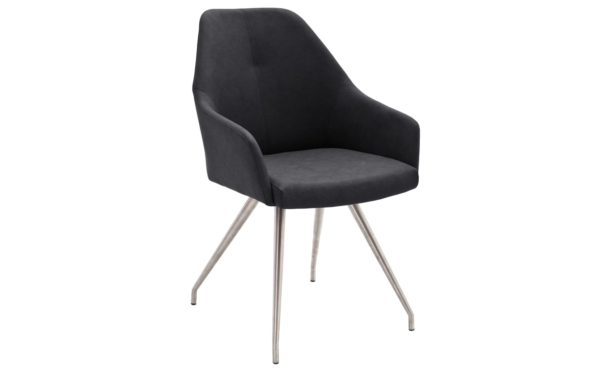 Ausführung mit Bezug aus pflegeleichtem Kunstleder Argentina in anthrazit, Gestell aus Edelstahl gebürstet, Füße oval und konisch geformt, belastbar bis max. 140 kg,