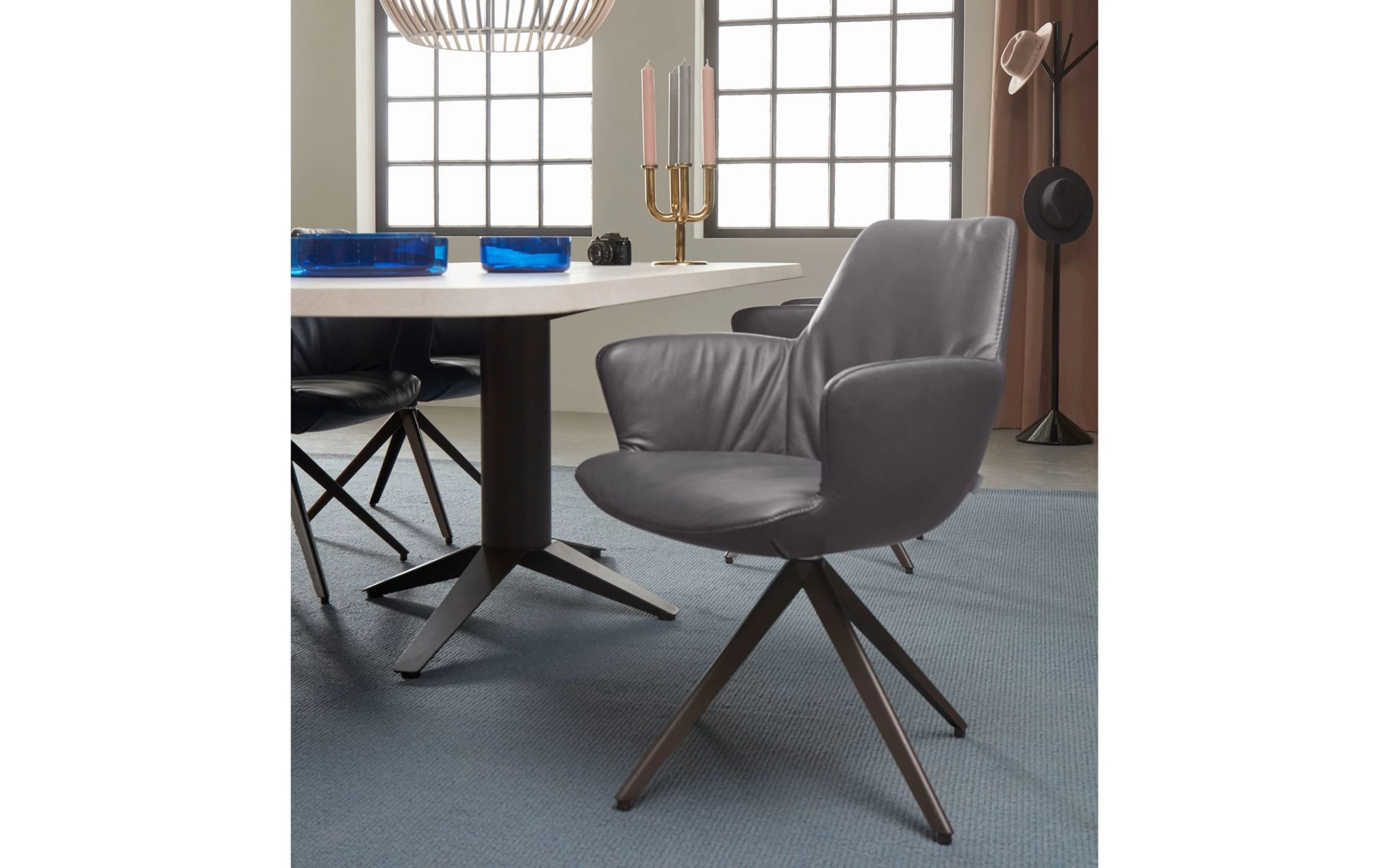 Ausführung mit echt Lederbezug Bold in elephant/grau, Stativgestell in anthrazit, 360 ° drehbar, mit praktischen Armlehnen, Belastbarkeit 100 kg,