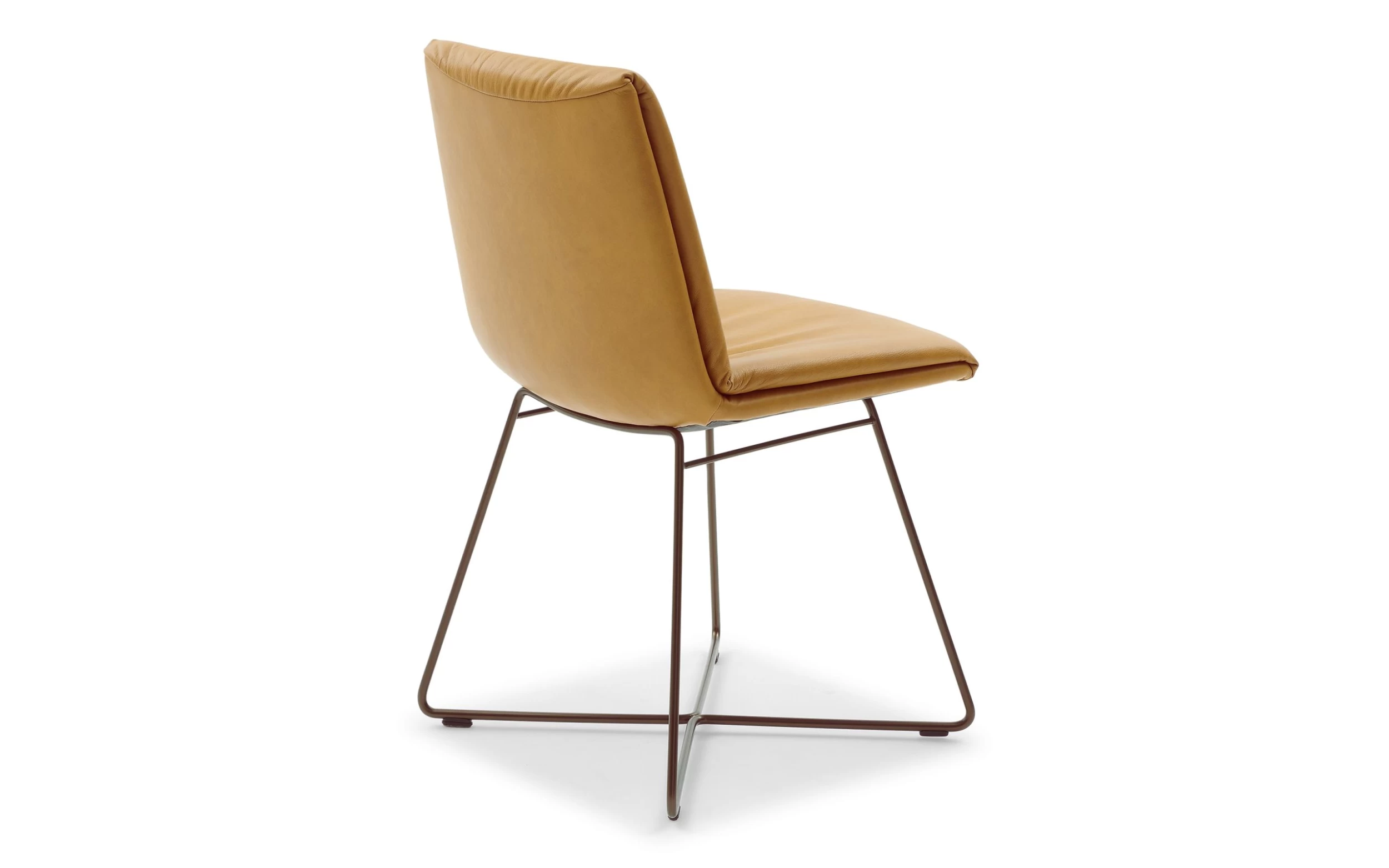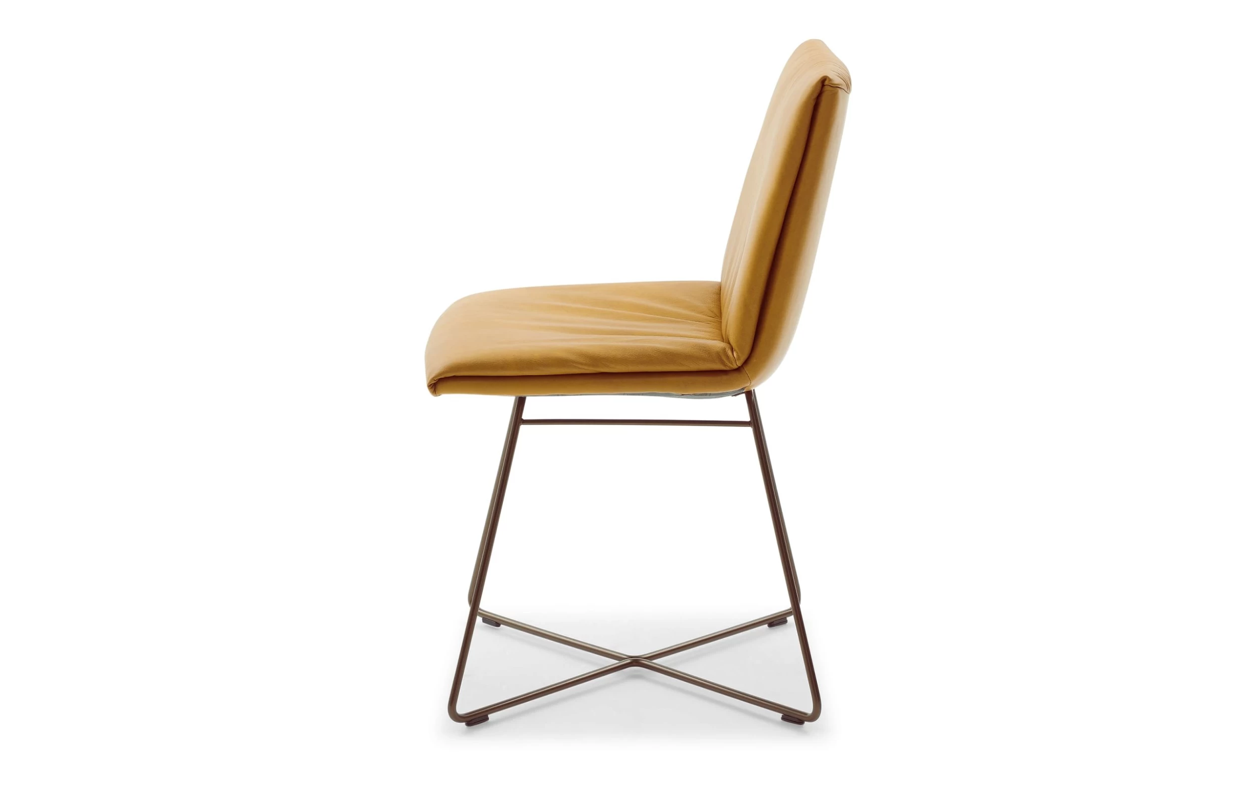Ausführung mit Lederbezug in kurkuma und edler Kontrastnaht, Drahtrohrgestell FQ7/M56 bronce,