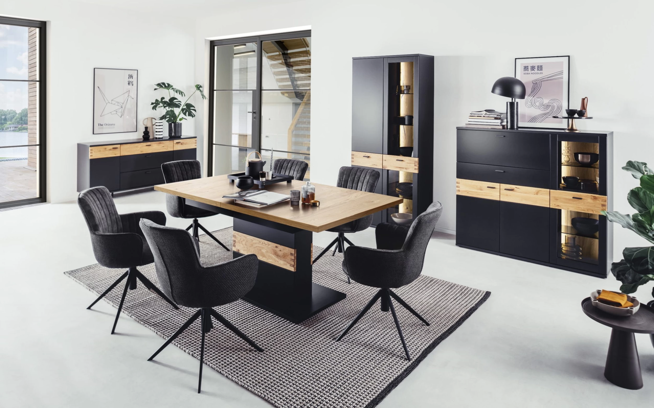 Sideboard Barcelona In Balkeneiche Massiv /Eiche Bianco Furniert, Inklusive Beleuchtung