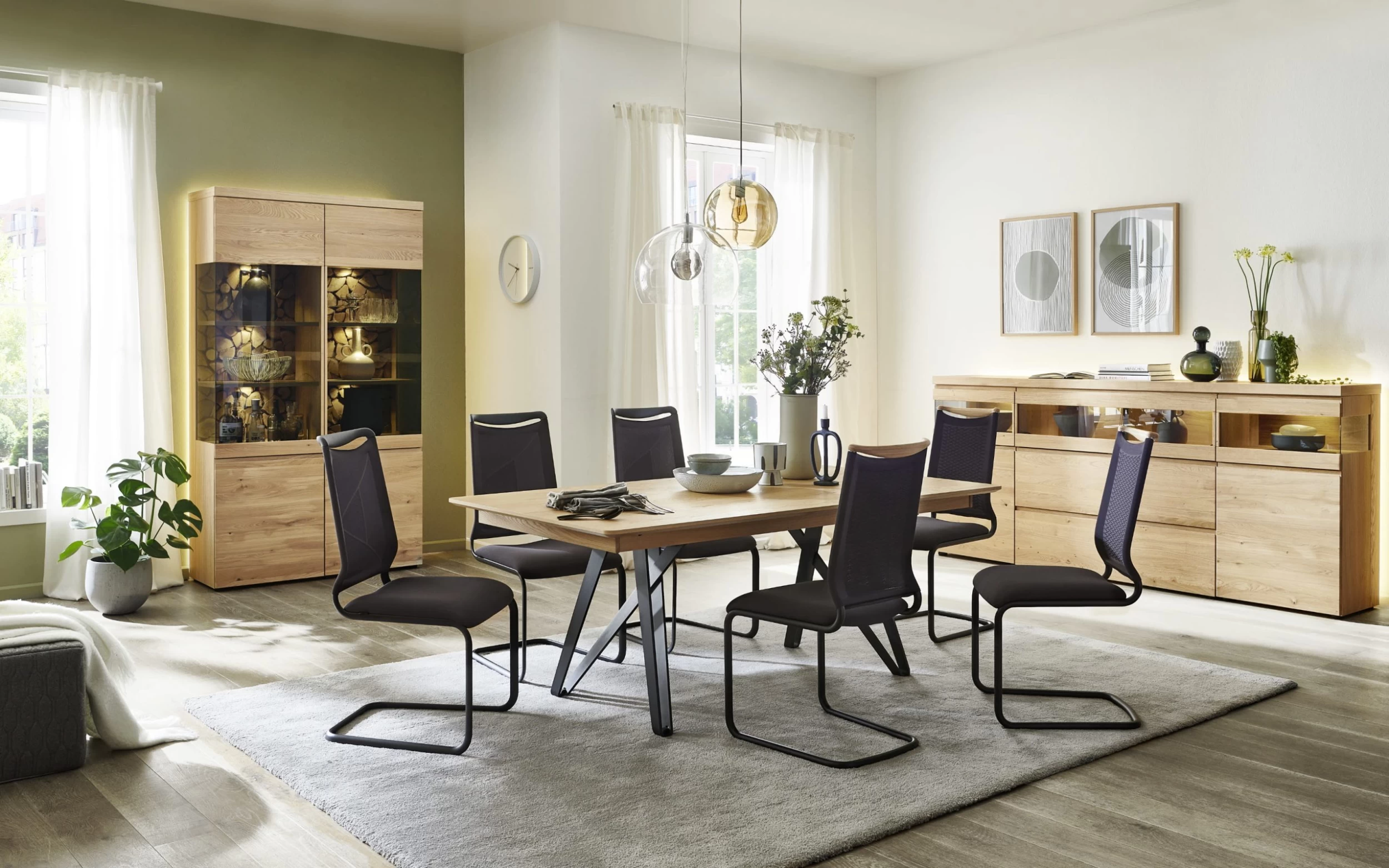 Sideboard Barcelona In Balkeneiche Massiv /Eiche Bianco Furniert, Inklusive Beleuchtung